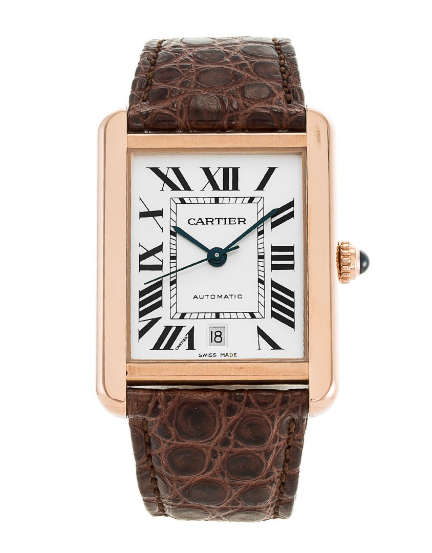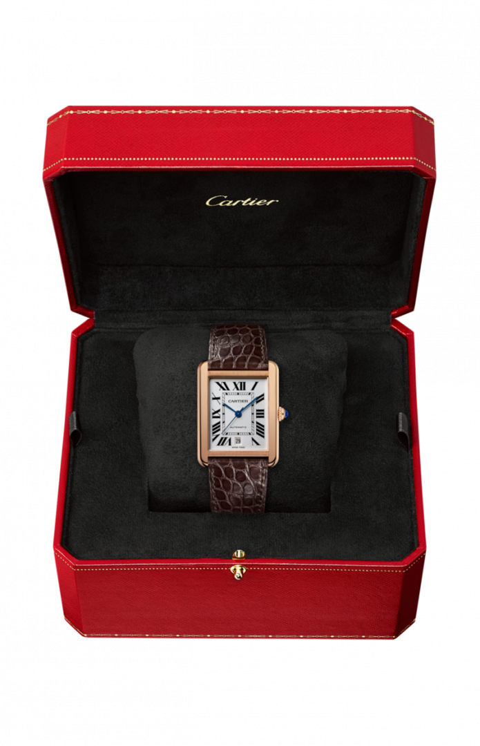 Luxury watches Cartier Tank solo TANK SOLO. Basic parameters of the watch are: dial colour is white and silver, movement type is mechanical watch with automatic winding, bracelet is leather and water resistance is 30 m.
