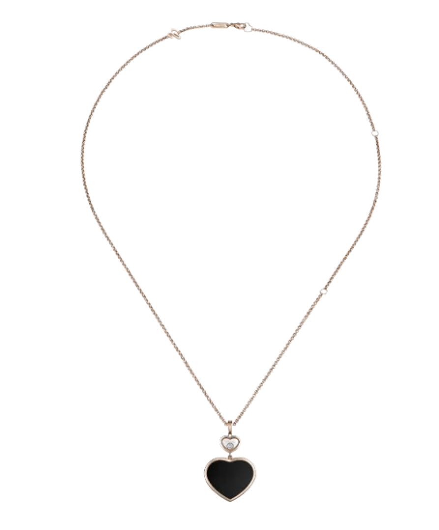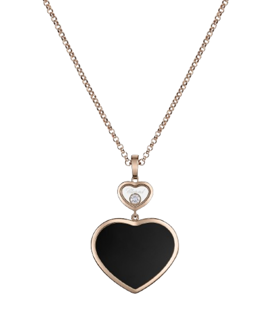 Chopard Happy Hearts PENDANT ROSE GOLD, DIAMOND, ONYX.