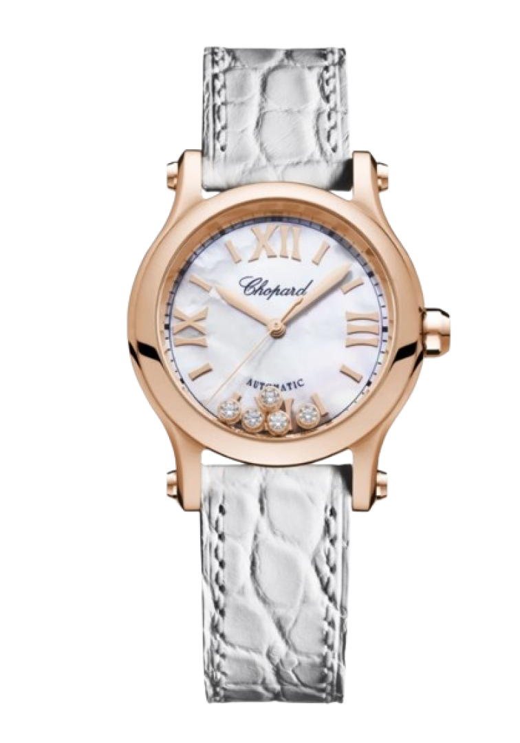 Luxury watches Chopard Happy Sport 30 mm rose gold case, croco leather.