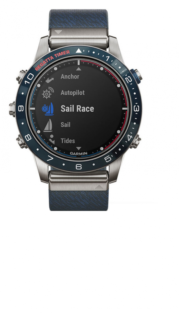 Sport watches Garmin MARQ Captain . Basic parameters of the watch are: bracelet is fabric and water resistance is 100 m.