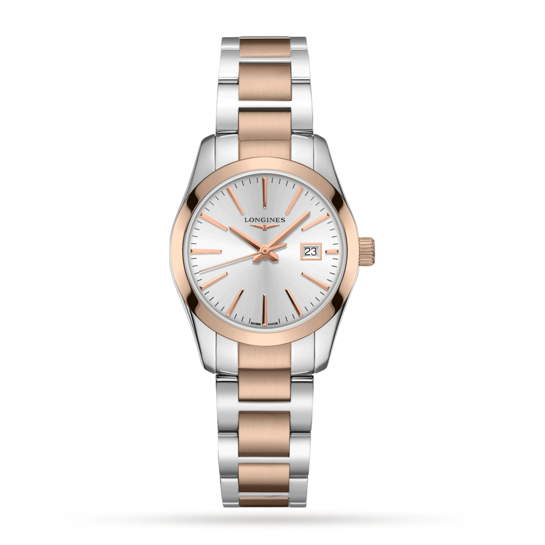 luxury watches Longines Conquest Classic Quartz, 29.50 mm. The watch has functions luminescence, date and E.O.L.. Basic parameters of the watch are: movement type is Quartz watches, strap material is steel, water resistance is 50 m and dial colour is silver.