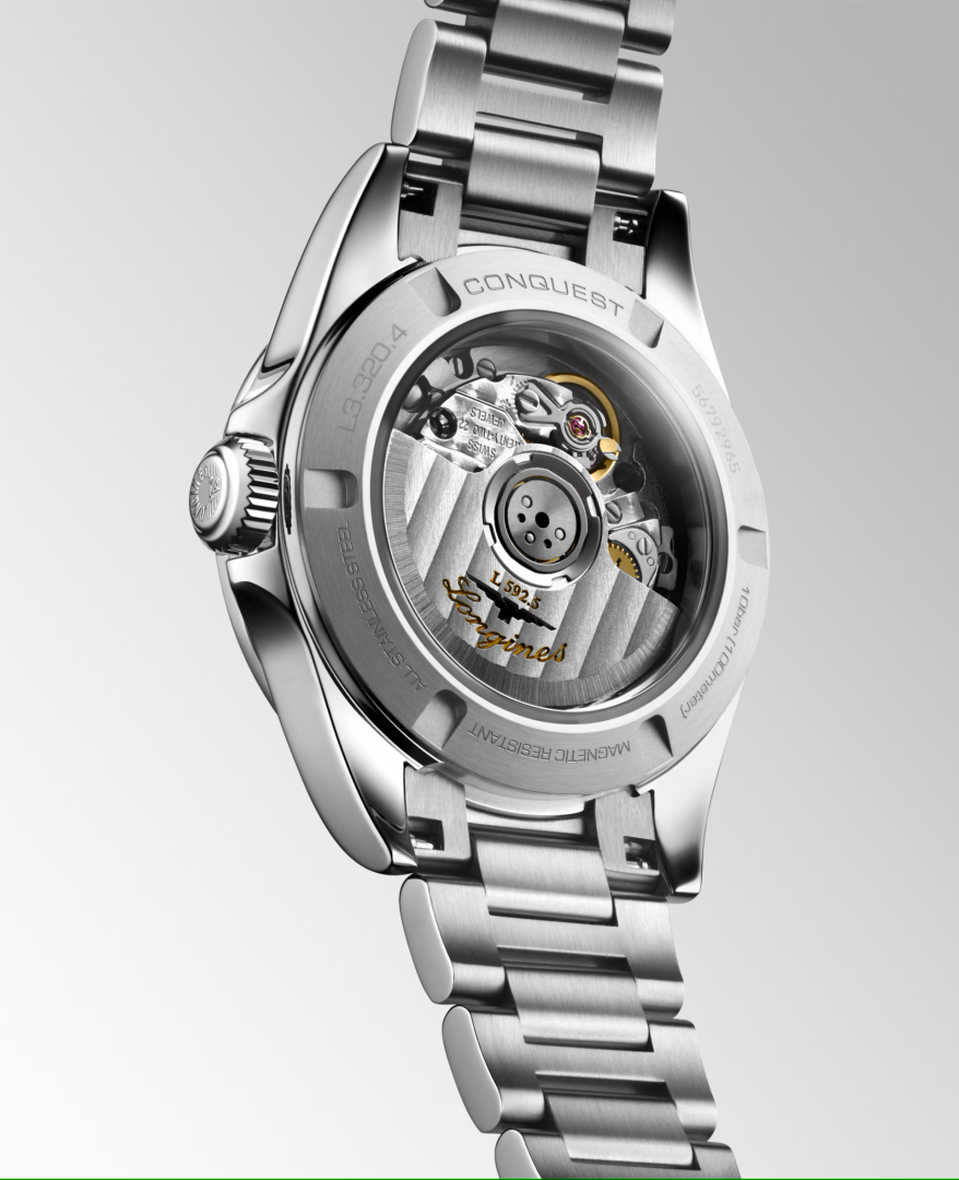 Ladies luxury watches Longines Conquest L33204076. The watch has functions date. Basic parameters of the watch are: bracelet is steel, water resistance is 30 m, dial colour is green and movement type is mechanical watch with automatic winding.