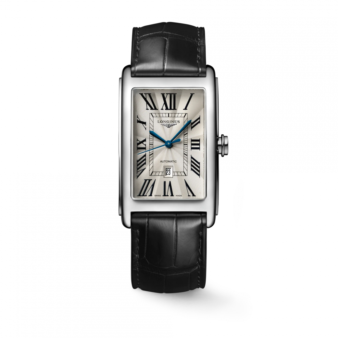 luxury watches Longines DolceVitta Automatic, 28.2 x 47 mm. The watch has functions date . Basic parameters of the watch are: dial colour is beige, movement type is mechanical watch with automatic winding, strap material is leather and water resistance is 30 m.