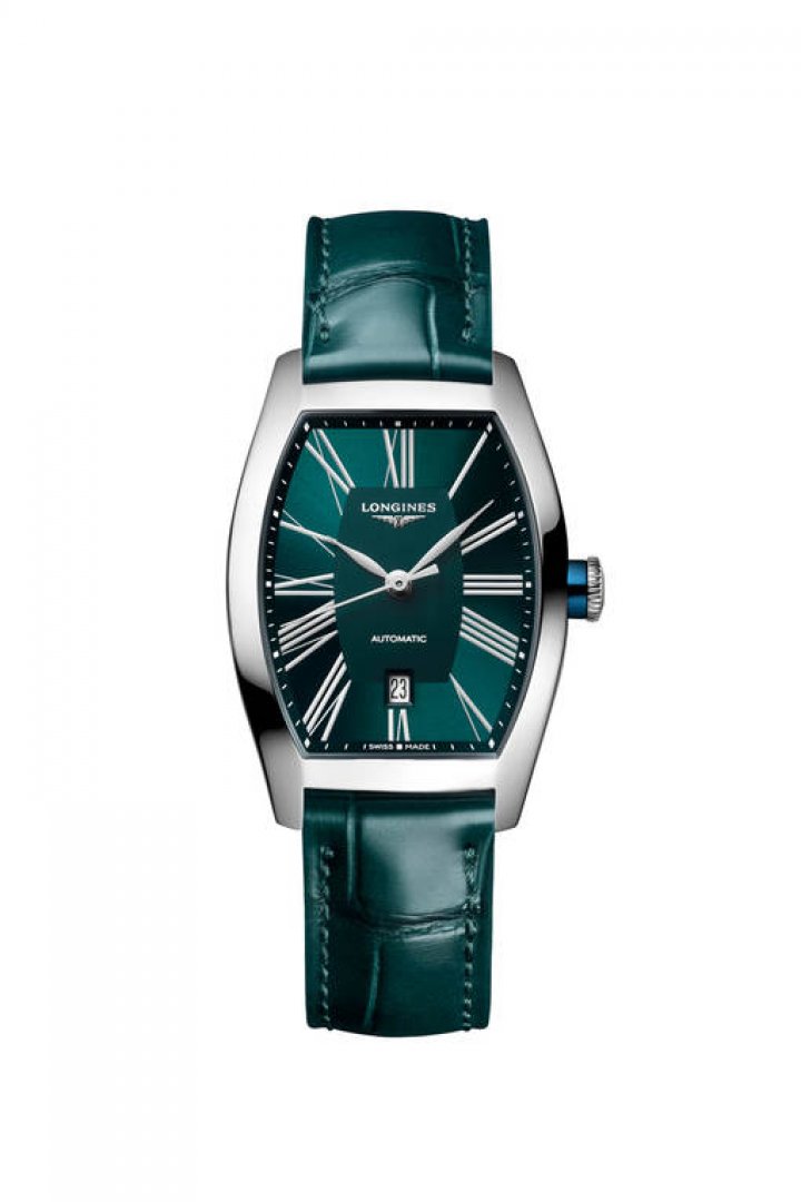 luxury watches Longines Evidenza Automat, 26.00 X 30.60 mm. The watch has functions date . Basic parameters of the watch are: strap material is leather, water resistance is 30 m, movement type is mechanical watch with automatic winding and dial colour is green.
