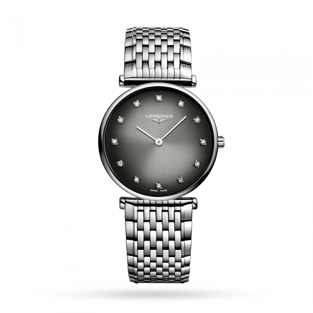 luxury watches Longines La Grande Classique de Longines Diamonds, Quartz, 29 mm. Basic parameters of the watch are: movement type is Quartz watches, strap material is steel, water resistance is 30 m and dial colour is grey.