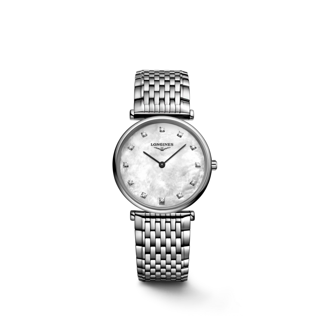 Luxury watches Longines La Grande Classique de Longines Quartz, Ultra Thin, 29 mm. Basic parameters of the watch are: dial colour is pearl, movement type is Quartz watches, strap material is steel and water resistent is 30 m.