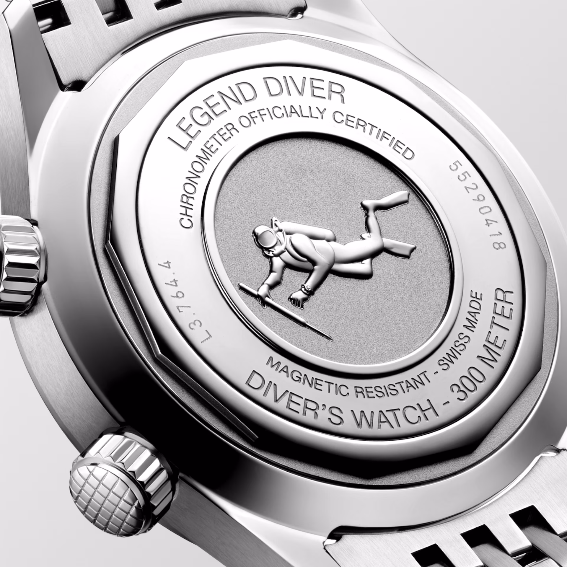 The Legend Diver is one of the most famous models in the Heritage collection, paying tribute to Longines' historic diving watches from 1959. This model is equally at home underwater and on land – its clean lines and technical precision make it a versatile accessory for adventurers and lovers of classic style alike.