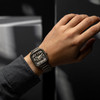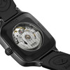 The matte black model uses the same case material, functional ceramic, but is treated with a matte black coating. The black PVD coating applied to the titanium case back and the sandblasted details lend a darker, more distinct character to this color combination.
