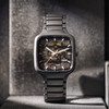 Rado True Square Skeleton collection in matte black ceramic and matte gray plasma-cemented versions