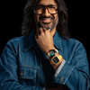 ej Chauhan with two watches he designed on his wrist