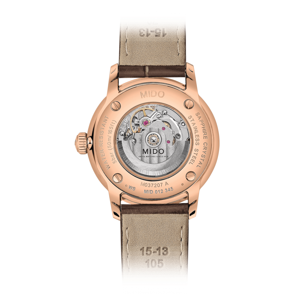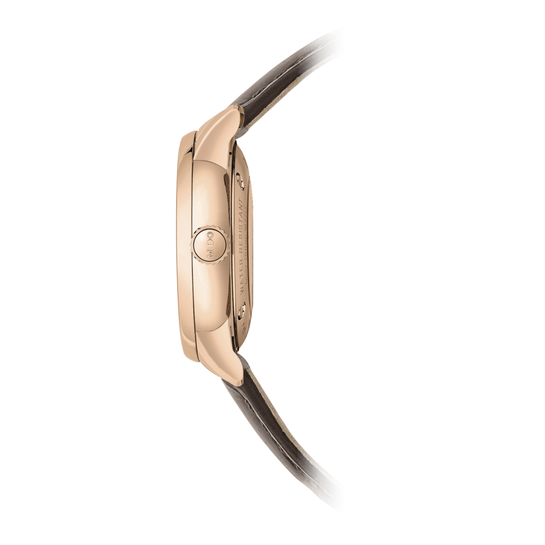 With the Baroncelli Signature MIDO has created a mechanical and aesthetic success that is a perfect expression of its watchmaking know-how. Intensely chic and timeless, this Swiss watch houses an automatic movement enhanced with a balance-spring in Nivachron™. A guarantee of superior precision, it reduces the effect of magnetic fields, as well as withstanding shocks and the effects of time.