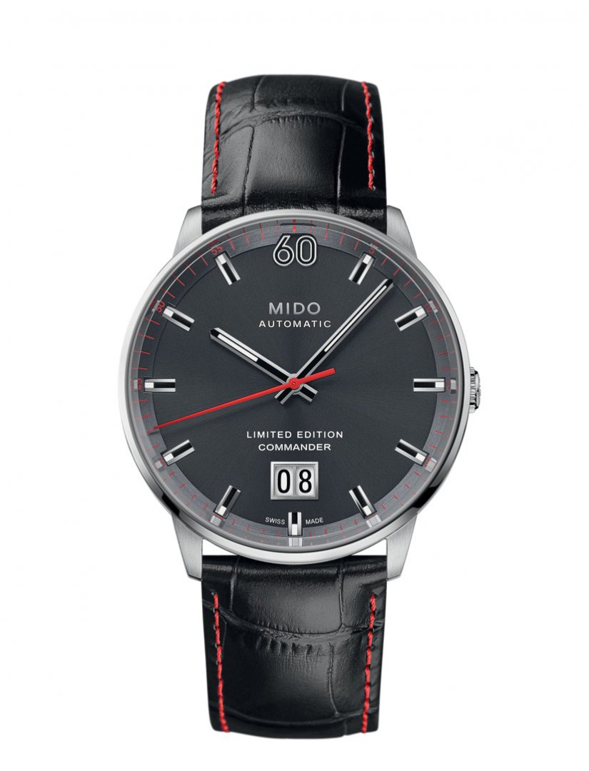 Swiss watches Mido Commander Big Date 60TH Anniversary Limited Edition . The watch has functions date. Basic parameters of the watch are: dial colour is grey, movement type is mechanical watch with automatic winding, bracelet is leather and water resistance is 50 m.