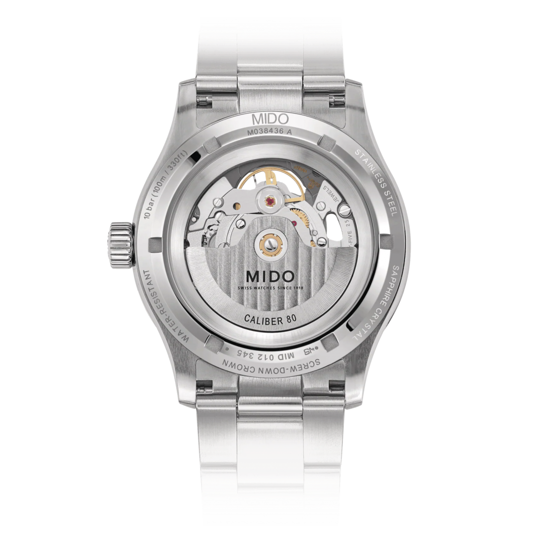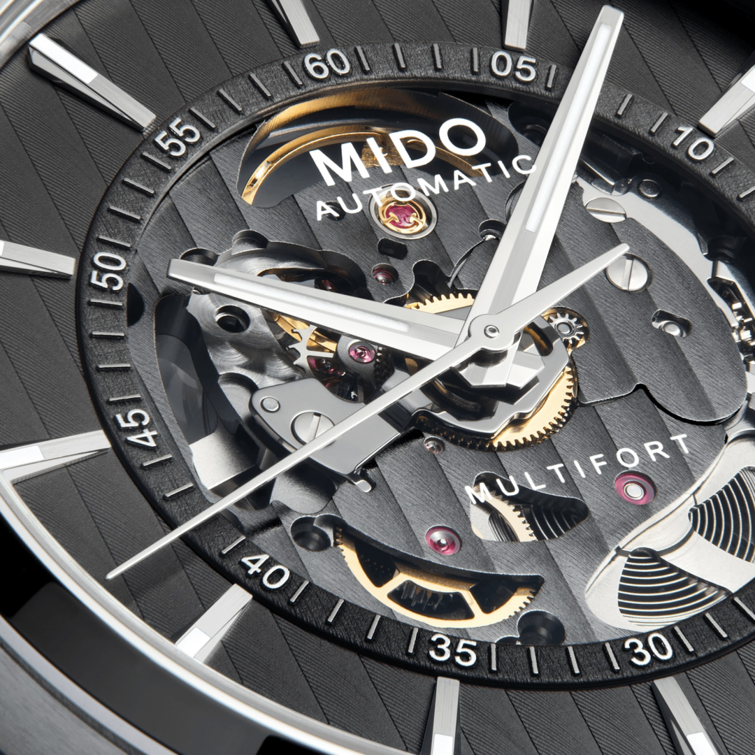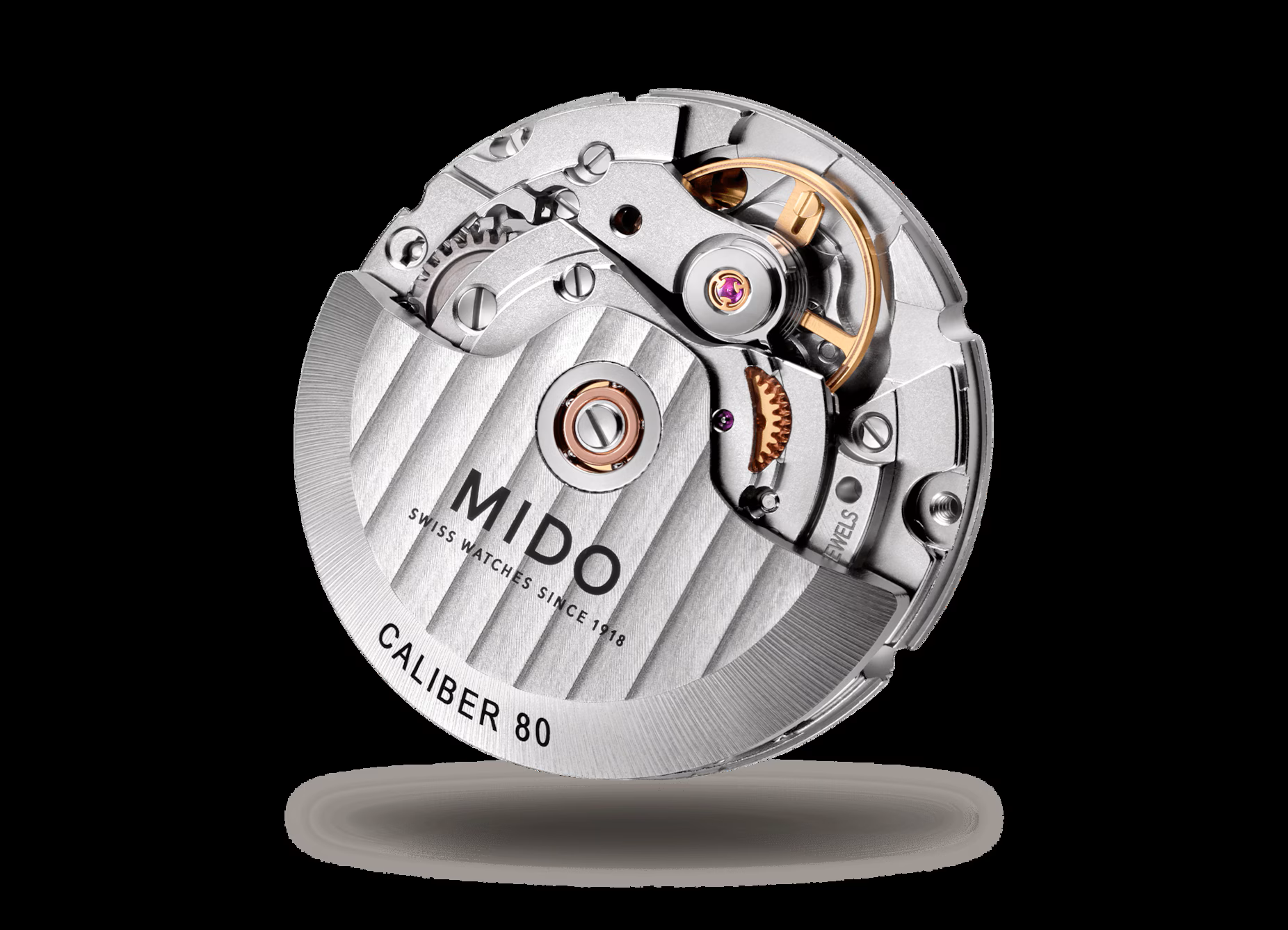 The MIDO Caliber 80 represents a major advance in self-winding movements. Thanks to its new-generation technology, it offers up to 80 hours of power reserve – twice as much as a conventional movement.