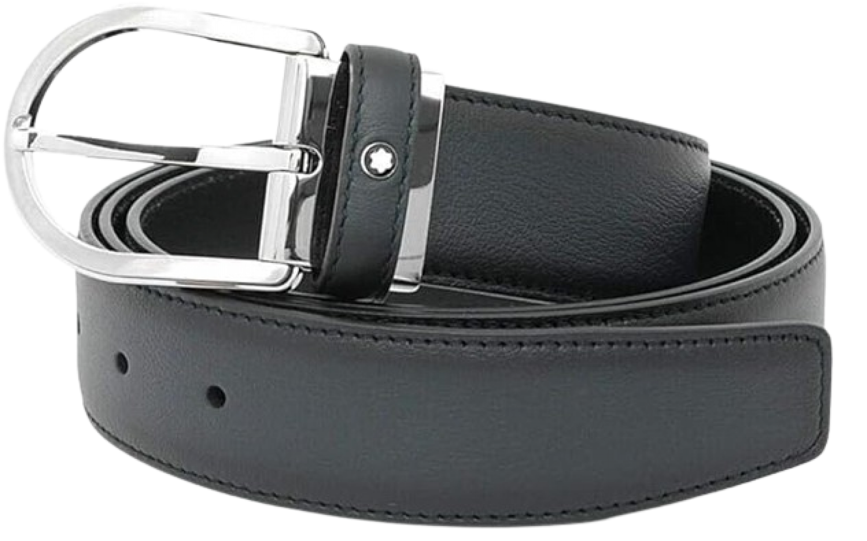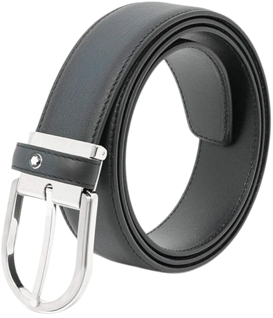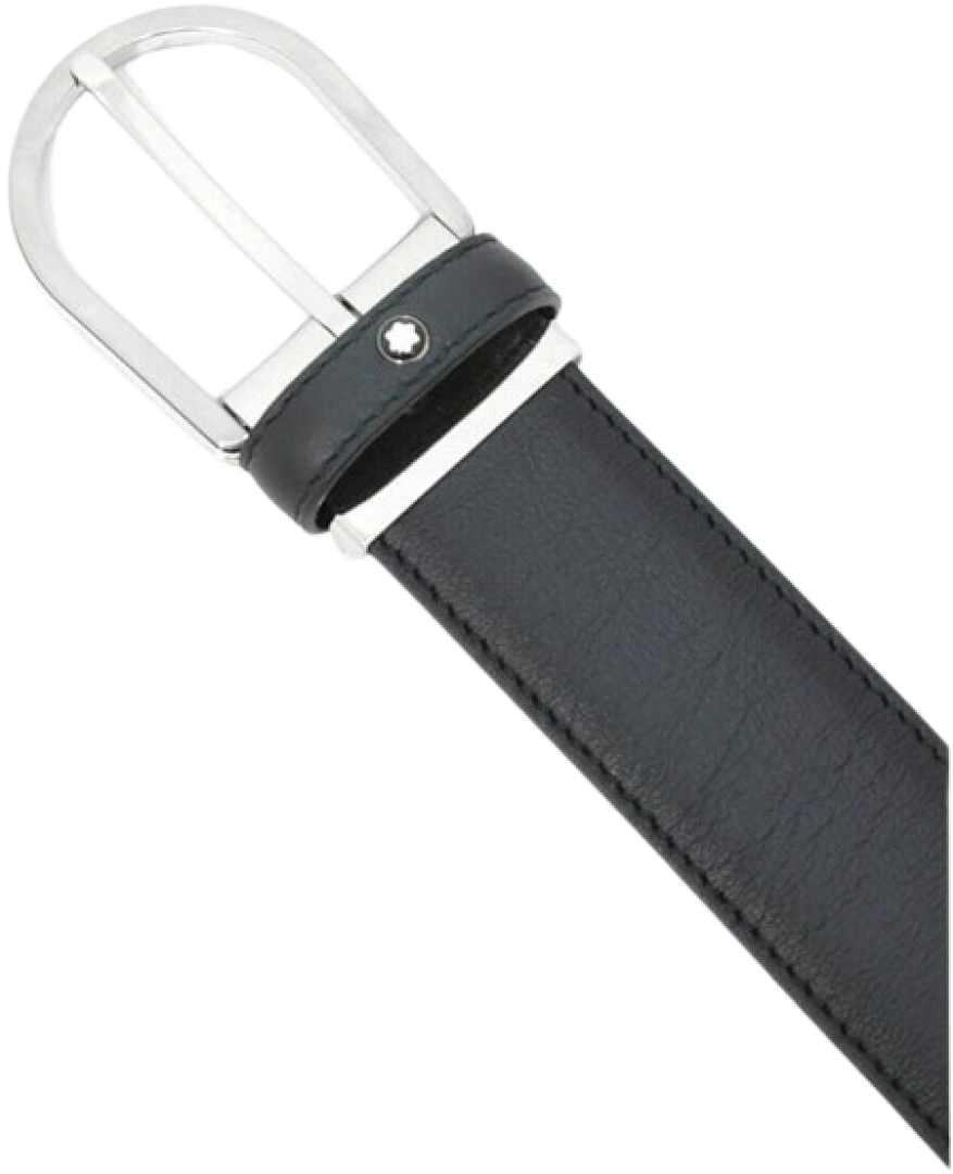 Round Horseshoe Shiny Palladium-Coated Pin Buckle. Self-adjustable, 3.5 cm x 120 cm, blue plain leather strap featuring the unique patina of hand-painted leather with delicate graduation of colors.