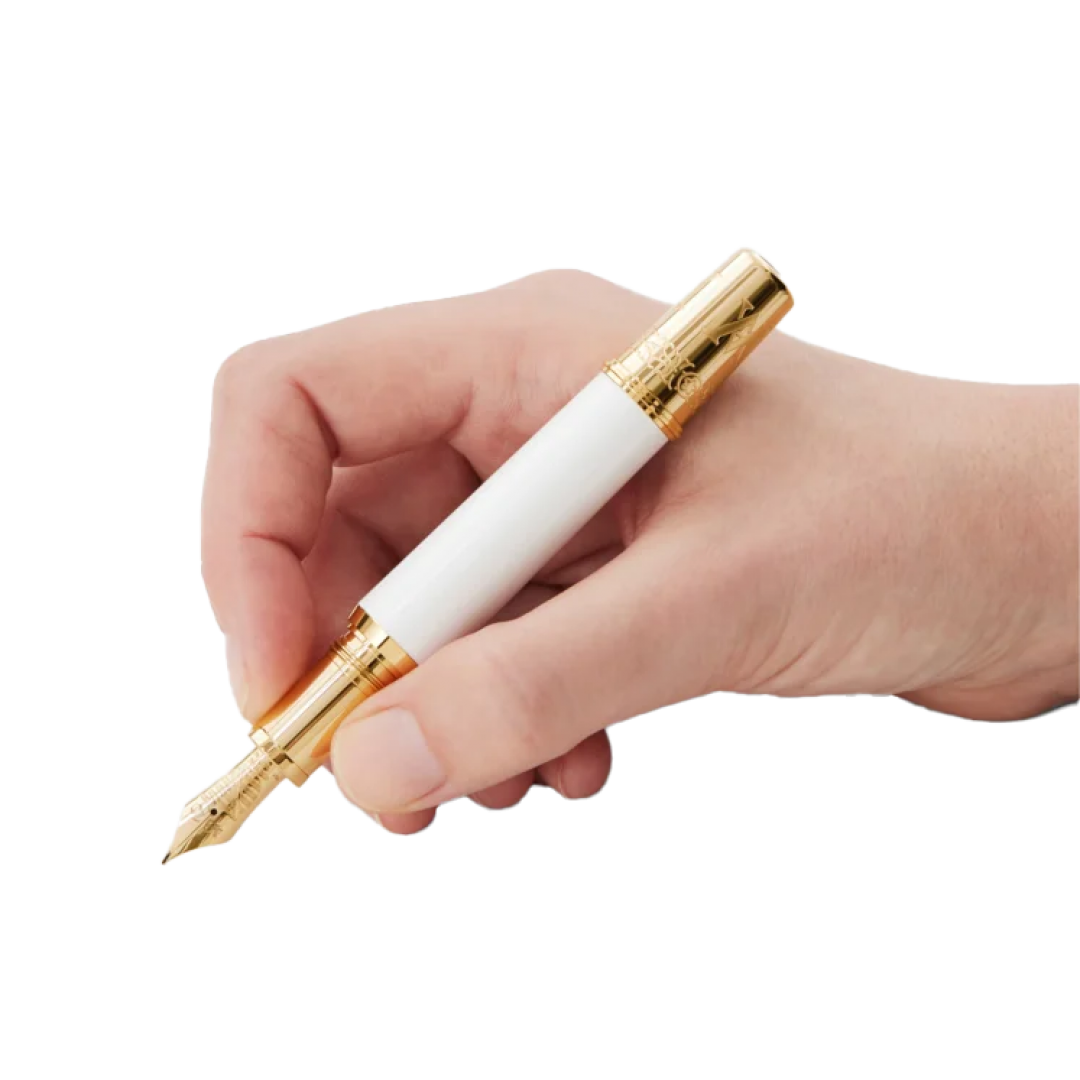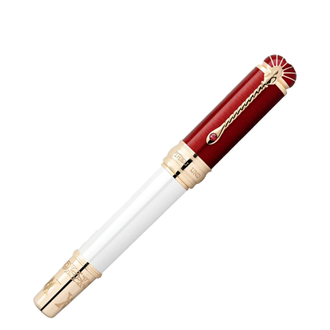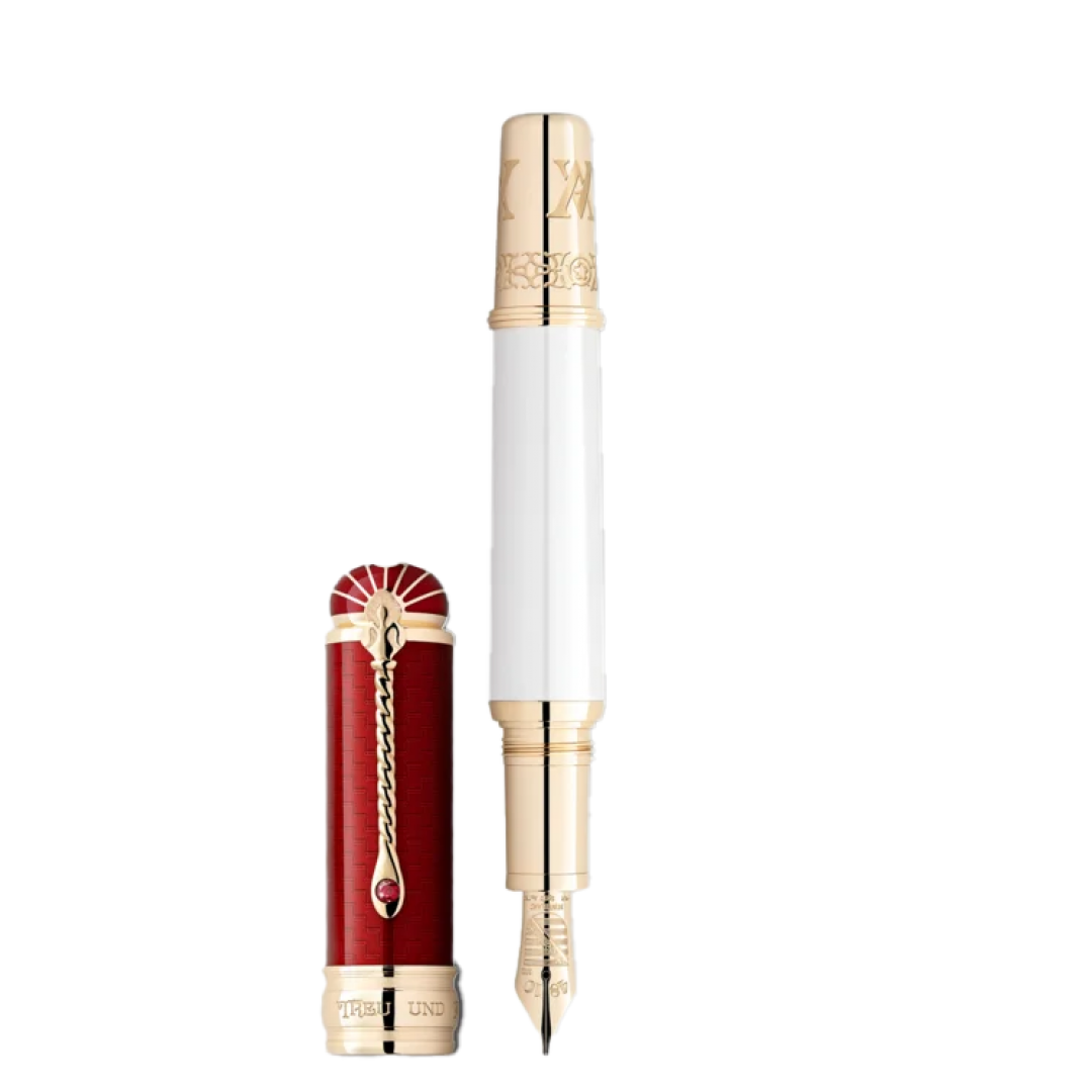 The Montblanc Patron of Art Edition in 2022 is dedicated to Queen Victoria & Prince Albert. The Limited Edition 4810 is a remarkable couple edition, one edition honors Queen Victoria and the other one her consort Prince Albert. The Montblanc Patron of Art Homage to Albert Limited Edition 4810 is celebrating the young Albert and comes with a pearl white lacquered barrel as well as a cap in translucent burgundy-tone lacquer with a special pattern underneath. The fittings are signature gold-coated. The clip shape is a tribute to his wife's scepter and is adorned with a red synthetic stone. The cap top is inspired by the Crystal Palace's dome and is adorned with the Montblanc emblem made from white precious resin. While the cap ring features the engraved quote "treu und fest", a special engraving decorates the cone. As a homage to his personal coat of arms, the handcrafted solid 18K gold nib bears an embossing inspired by the coat of arms of Saxony. With signature gold and/or signature gold-coating, Montblanc describes the enlightened shade of yellow gold which has become an appreciated tone for the Maison’s Writing Instruments.