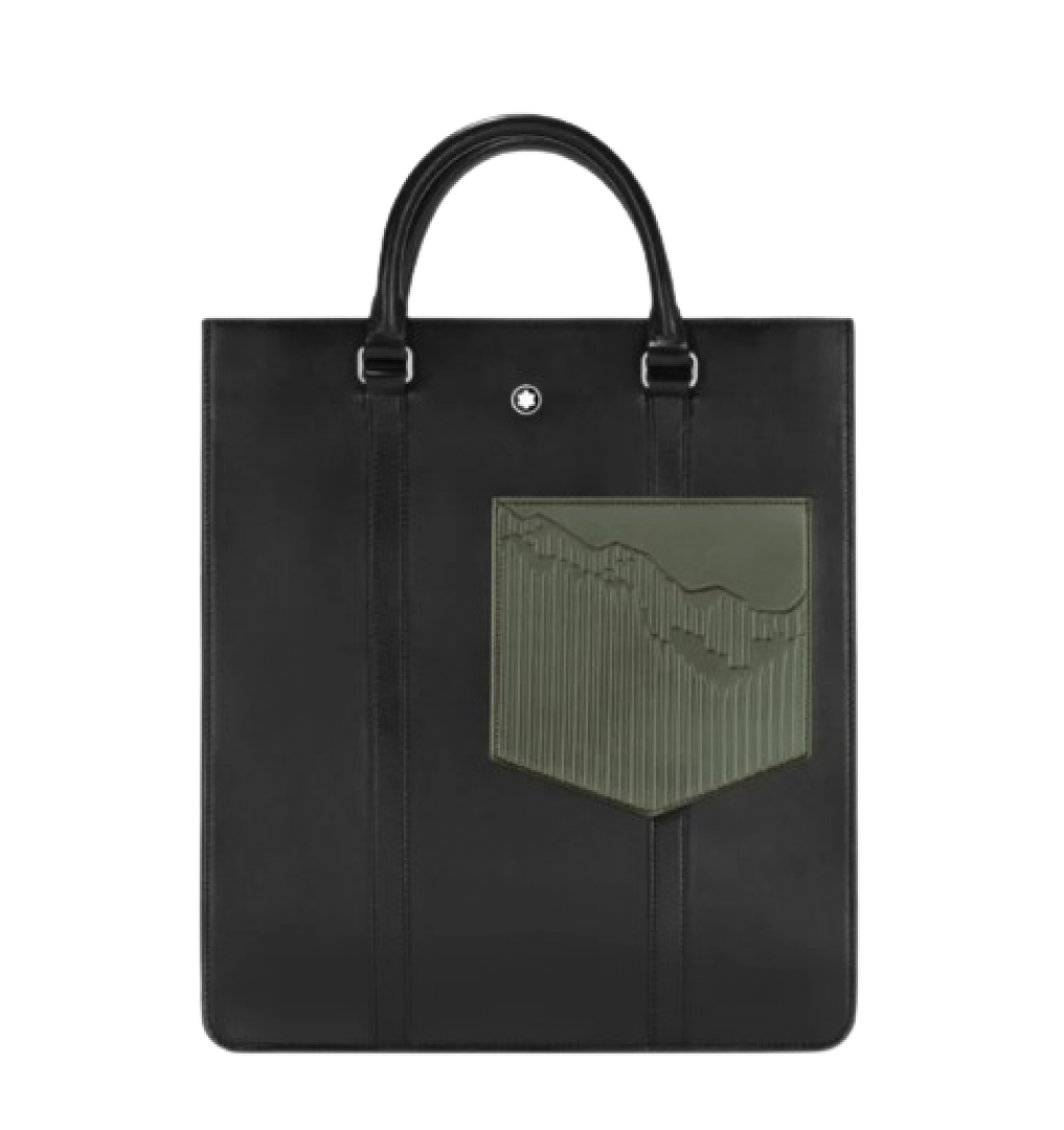 Celebrating 100 years of the Montblanc Meisterstück, this versatile leather bag is embossed with a contrasting Mont Blanc print, inspired by an original 1920s advertisement. Inside, there is a secure zipped pocket, an open slip pocket, plus a convenient pen loop. Carry it over your shoulder with the detachable leather strap, or opt for the leather top handles.