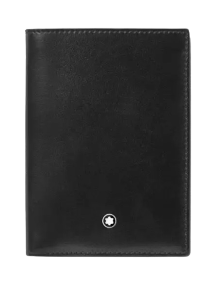 Wallet 4cc, made of black full-grain cowhide with Montblanc deep shine, jacquard lining with Montblanc brand name, and a Montblanc emblem with palladium finish ring, with 4 pockets for credit cards, compartment for banknotes, 4 additional pockets