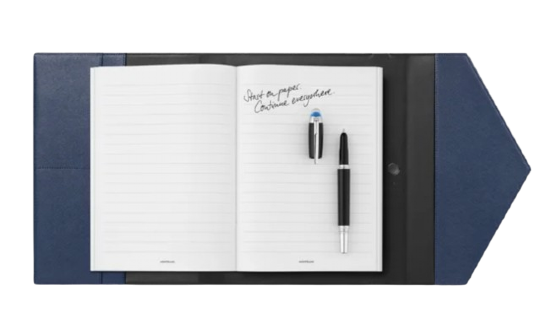 The Montblanc Augmented Paper takes the traditional art of handwriting into the digital world. Its sophisticated appearance follows our traditional leather goods' design but adds technology to its function. The Montblanc Hub App digitalises, syncs and organises handwritten notes. This enables our clients to capture the benefits of both, the traditional and the modern way of note taking.