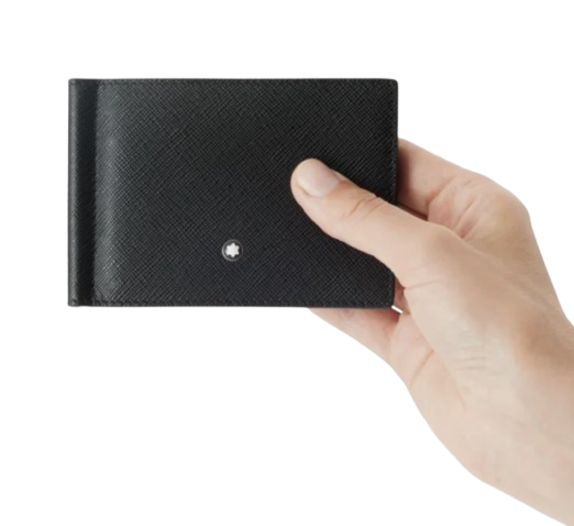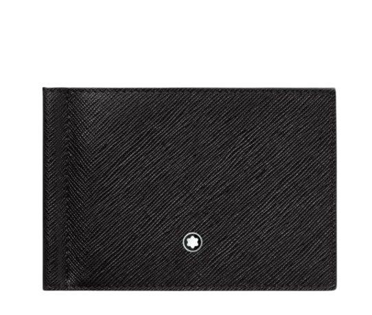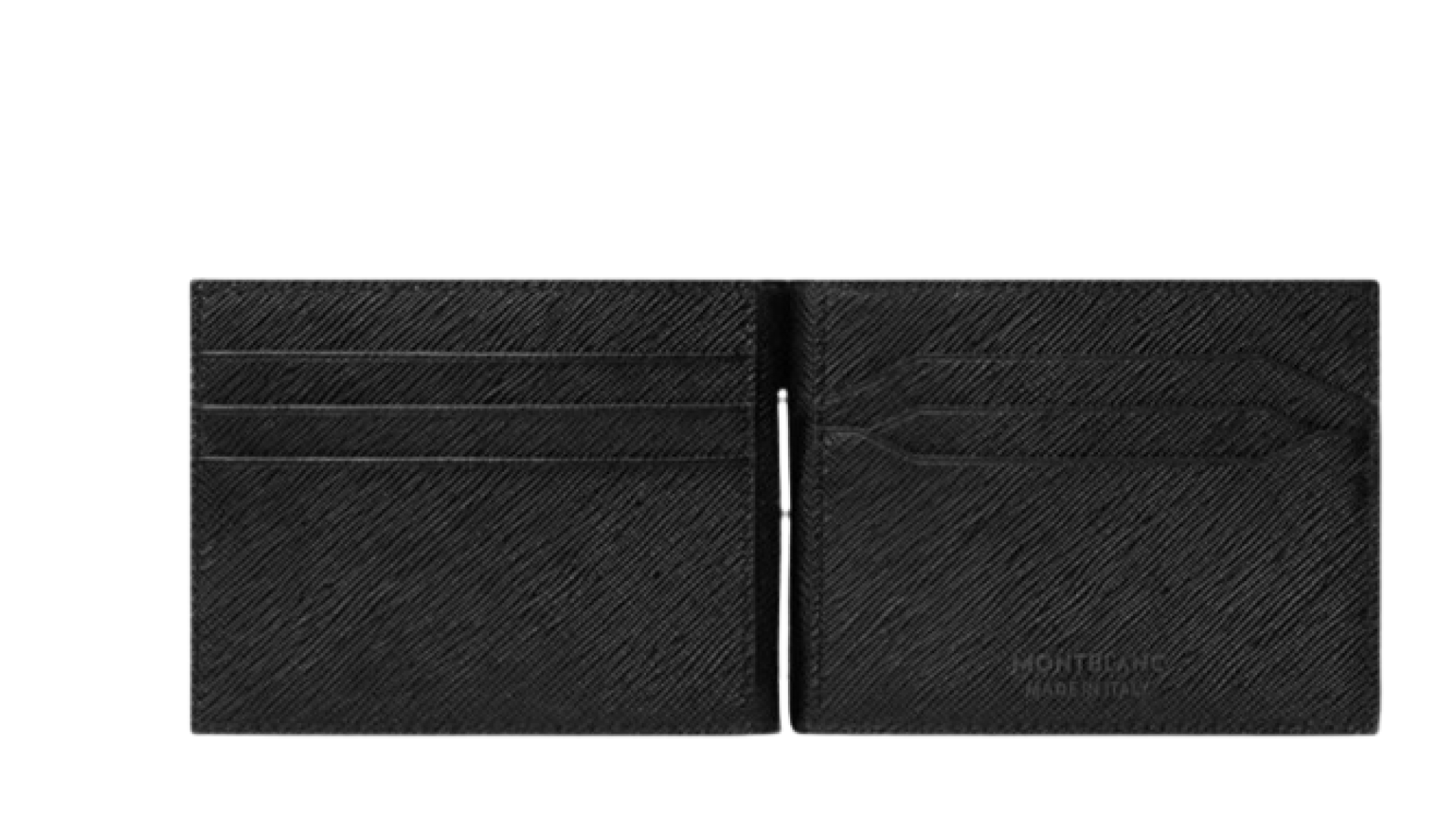 Practical and slim, this SARTORIAL wallet is crafted in black leather . Features 6 credit card slots and a money clip.