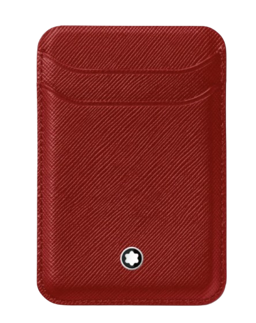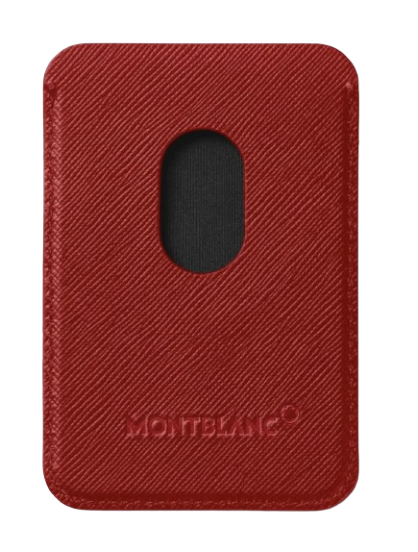 This Apple MagSafe-compatible smart leather wallet can magnetically be attached to your phone or cover. Its compact rectangular design features rounded corners for a contemporary aesthetic. Key details include the Montblanc emblem and dedicated slots that accommodate two credit cards.