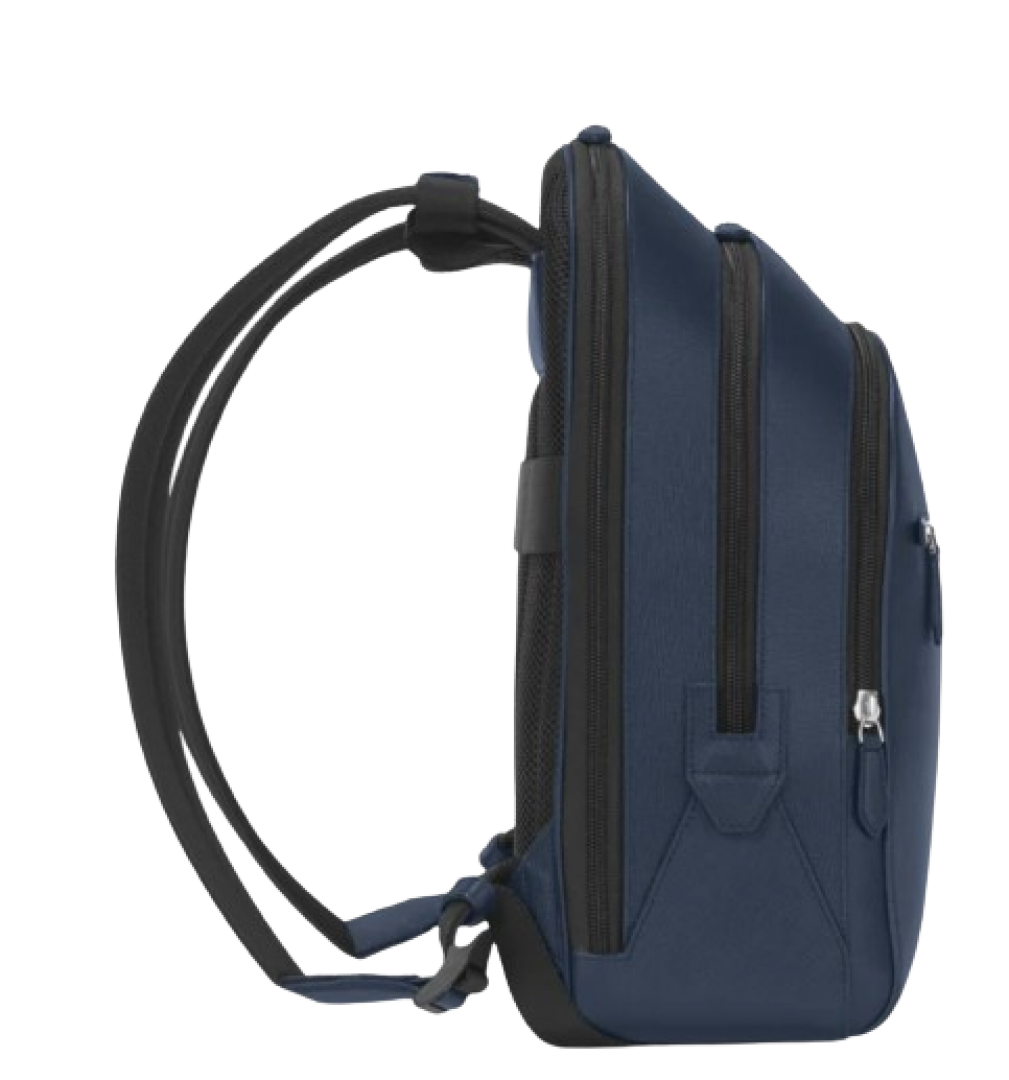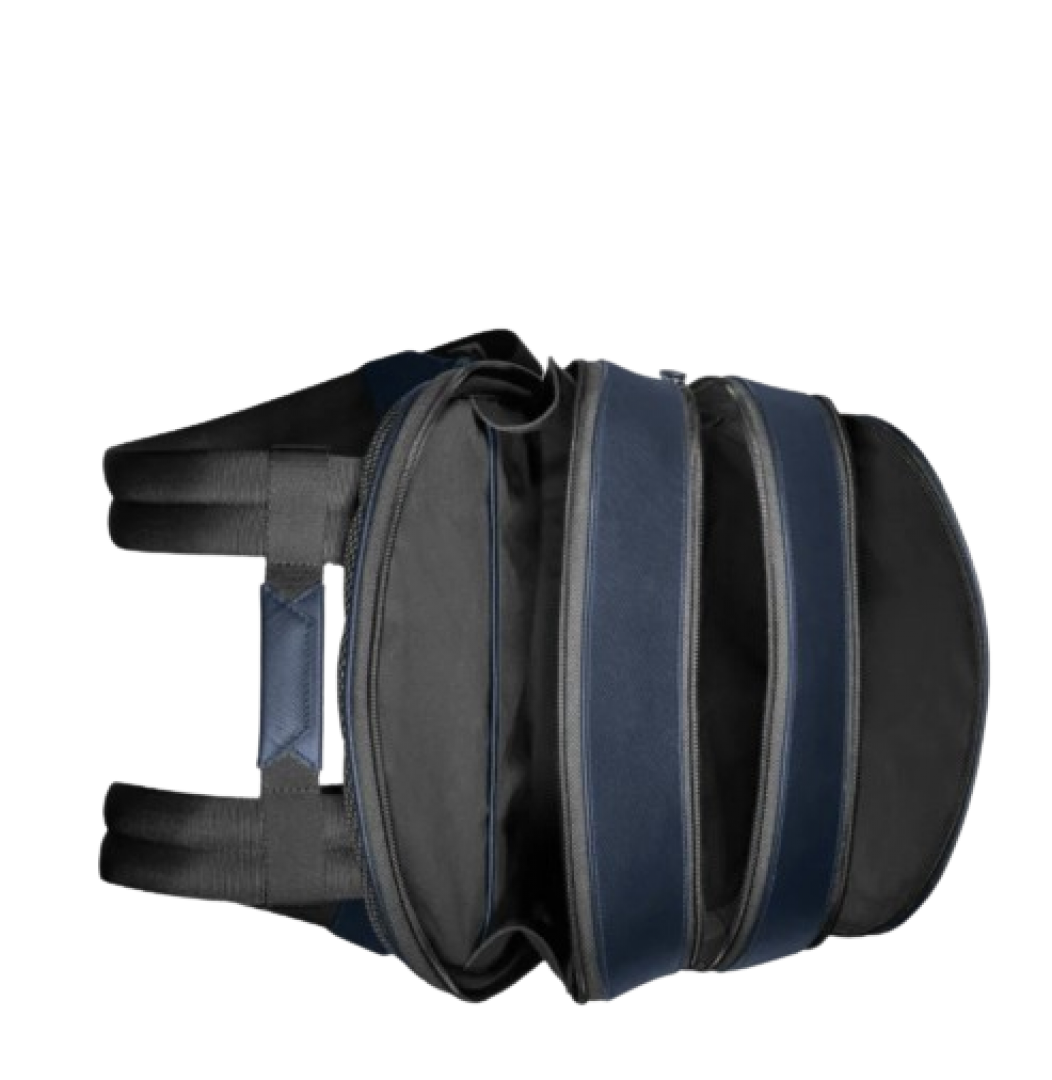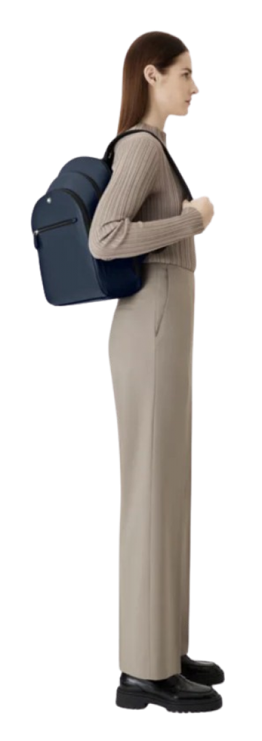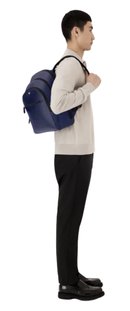 Combining functionality with refined city style, this backpack is a suitable companion for navigating the city. Its Saffiano-printed ink blue leather ups the sophistication factor, while the bag’s three compartments offer ample room for documents, devices and writing instruments. The exterior compartment features the Montblanc emblem in a new larger size. The satellite system allows you to easily attach it to trolleys.