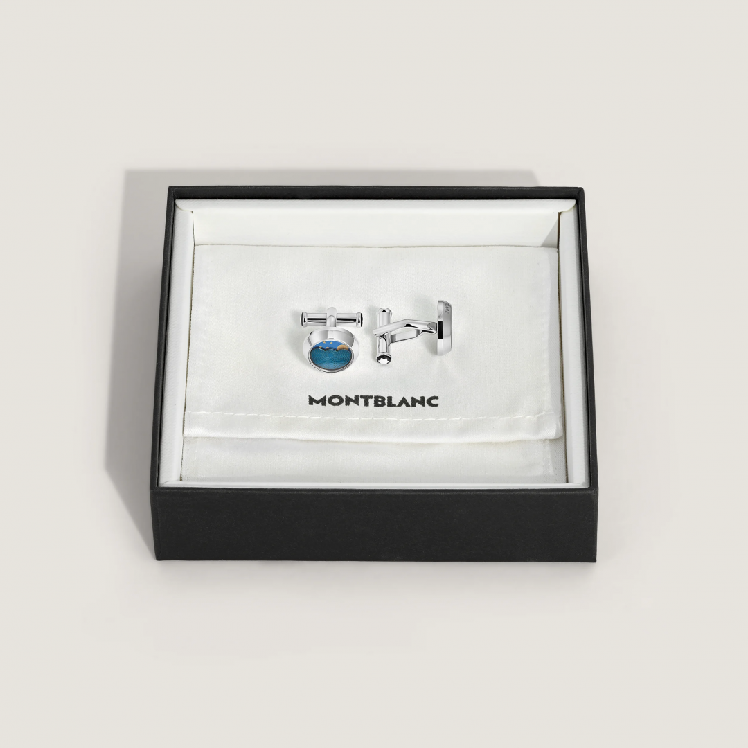 Cufflinks in stainless steel inspired by the dial of the Montblanc Star Legacy Moonphase watch. The cufflinks have a turning mechanism which allows to display the different phases of the Moon.