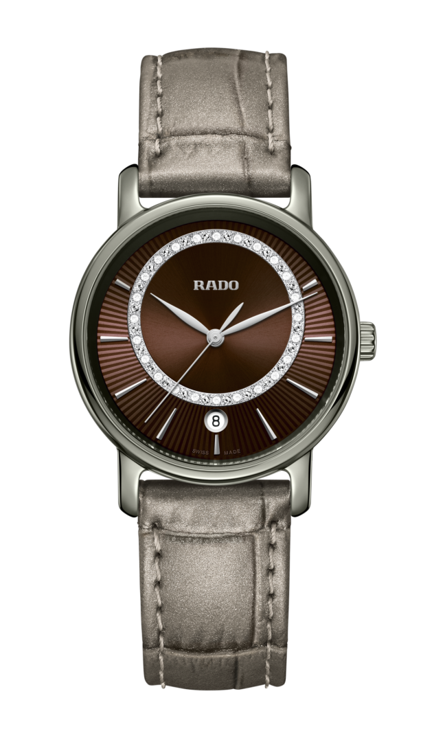 Luxury watches Rado DiaMaster 33mm ceramic case leather strap with diamonds.