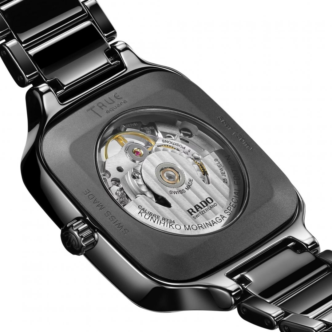 luxury watches luxury watches Rado True Square X Kunihiko Morinaga Special Edition Automatic, 38 mm. Basic parameters of the watch are: dial colour is transparent and silver, movement type is mechanical watch with automatic winding, strap material is ceramics and titanium and water resistance is 50 m.