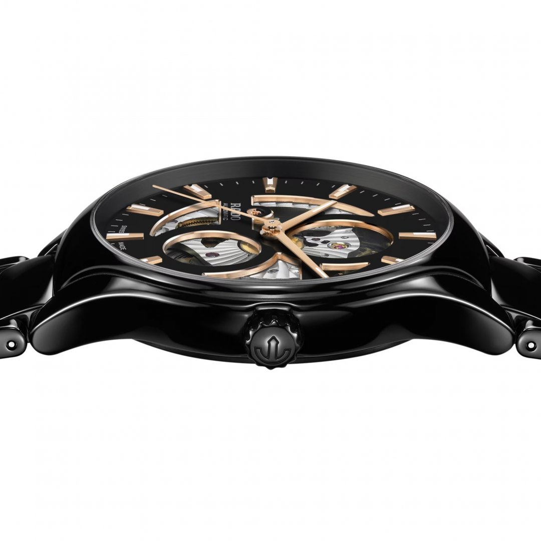 luxury watches Rado True AUTOMATIC OPEN HEART Ceramic, Automatic, 40 mm. The watch has functions luminescence. Basic parameters of the watch are: dial colour is transparent and black, movement type is mechanical watch with automatic winding, water resistance is 50 m and strap material is ceramics.