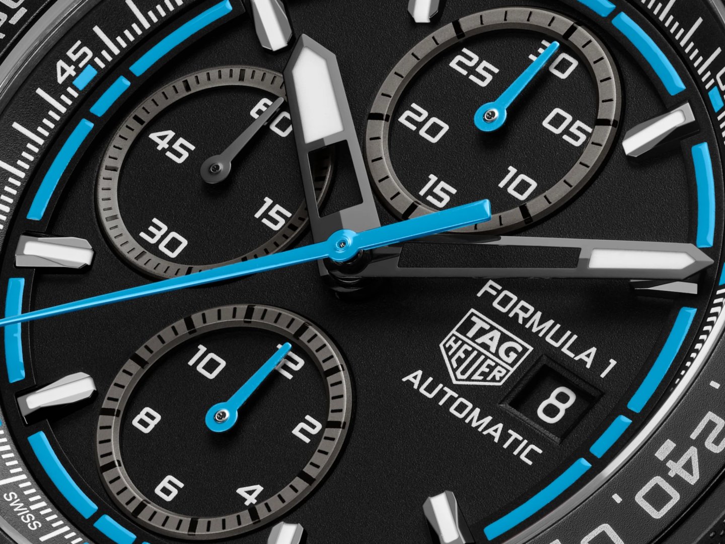 Introducing a new chapter in the TAG Heuer Formula 1 collection, the 44mm automatic chronograph embodies the fearless spirit of racing. With its robust titanium grade 2 case and dynamic rubber strap, this watch is built for speed and precision, both on and off the track.