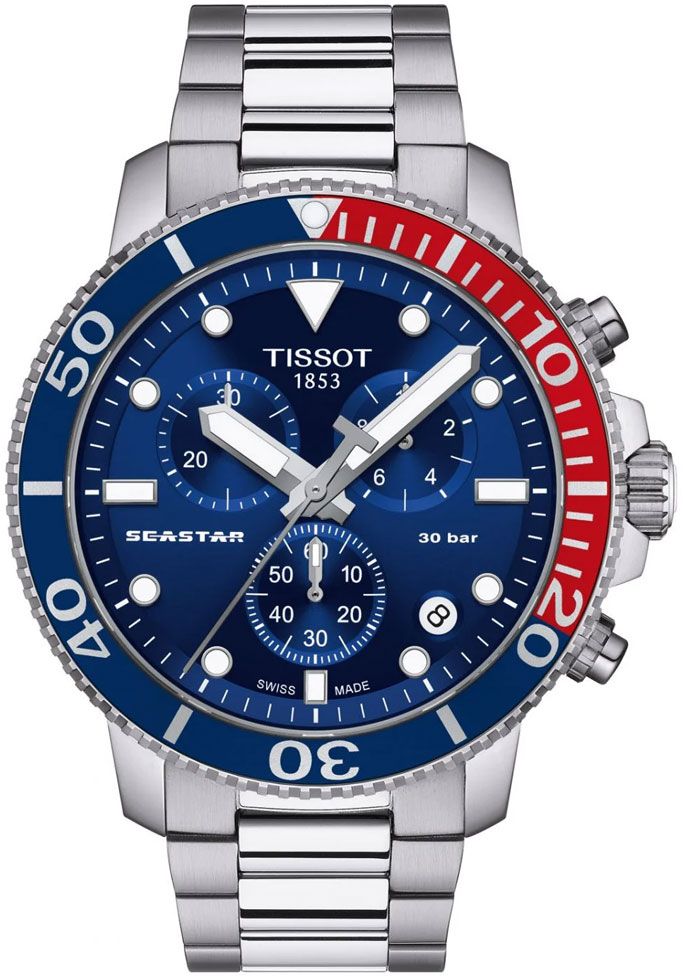 Men's luxury watches Tissot Seastar CHRONOGRAPH 45mm steel case steel strap.