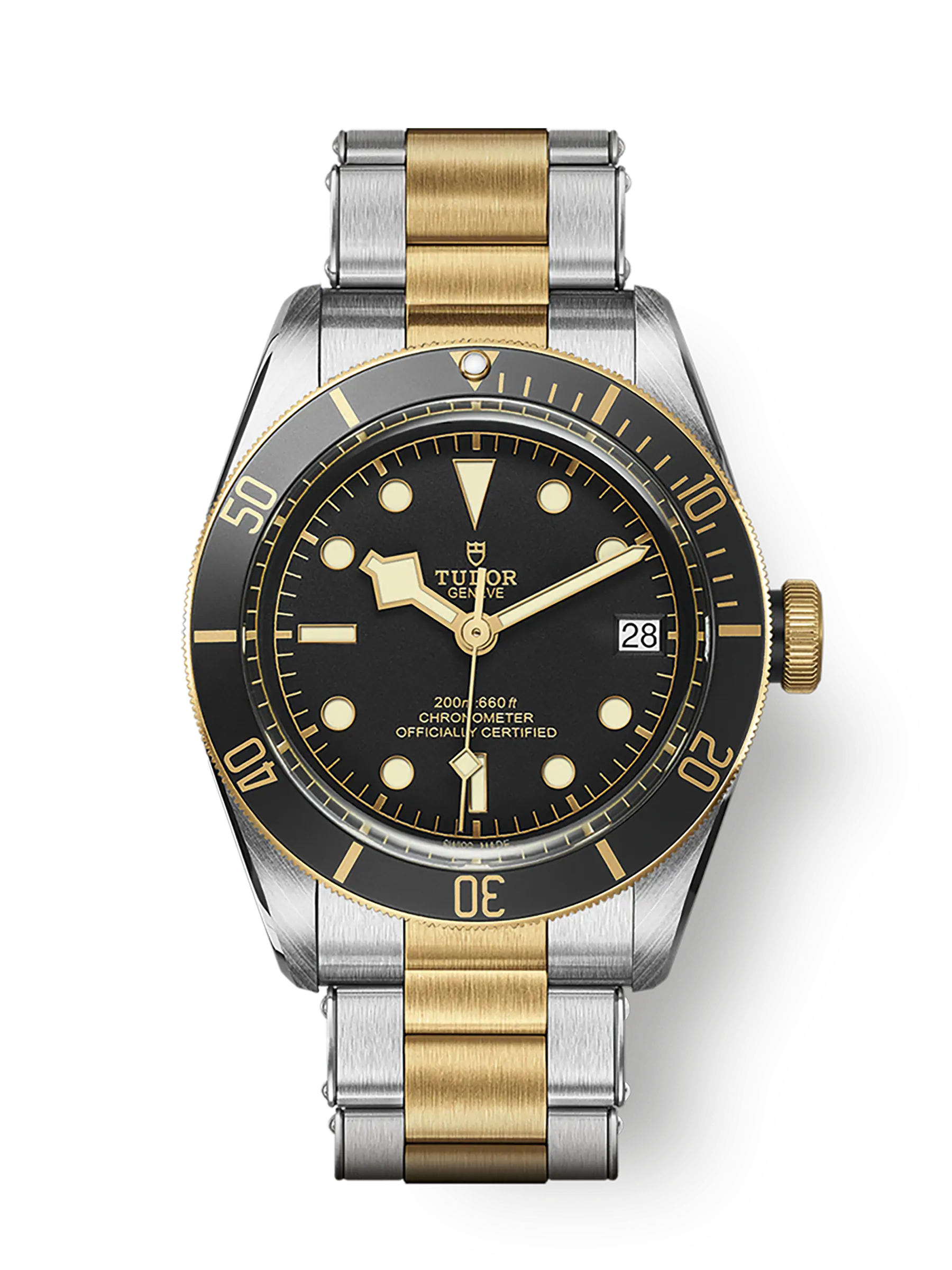 Luxury watches Tudor Black Bay S&G . The watch has functions date. Basic parameters of the watch are: dial colour is black, movement type is mechanical watch with automatic winding, bracelet is steel and 18k gold and water resistance is 200 m.