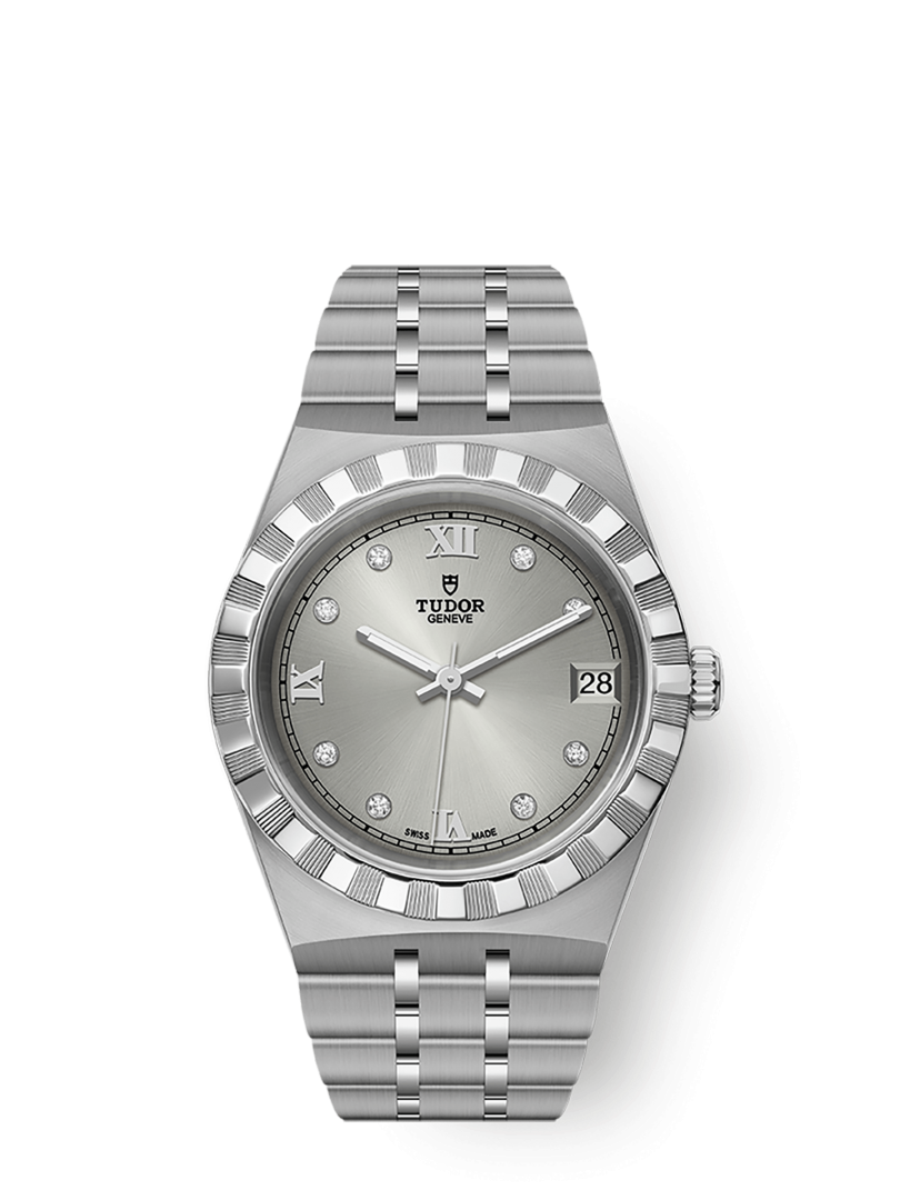 Luxury watches Tudor Tudor Royal 34mm steel case and bracelet silver dial diamonds.
