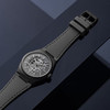 Az augusztus végén megjelenő csontvázasított, ún. szkeleton változat olyan módon alkalmaz egy rendkívül látványos díszítő megoldást, hogy közben mégis megőrzi a funkcionalista formajegyeket. Az áttört alaplapnak hála az óraszerkezet alkatrészei és működése még inkább előtérbe kerül.