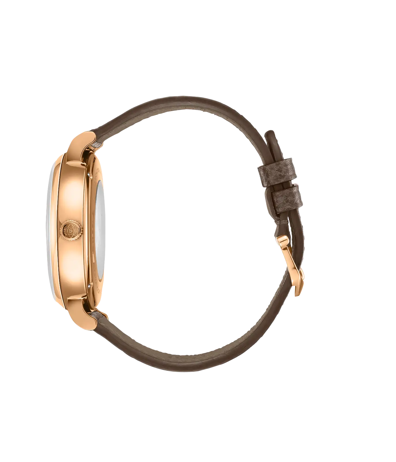 • Szíj: taupe színű borjúbőr szíj, amely ötvözi a kényelmet és az eleganciát.