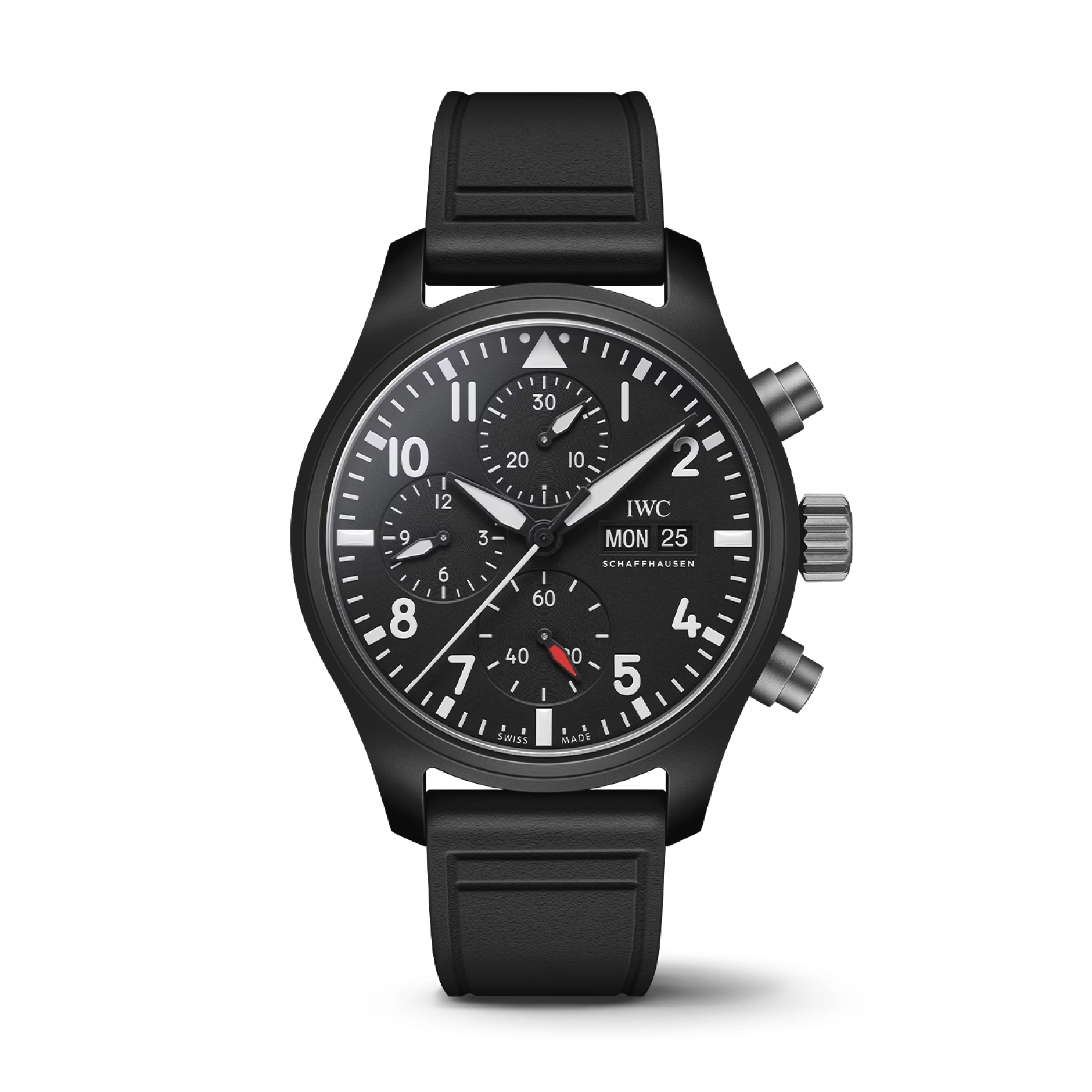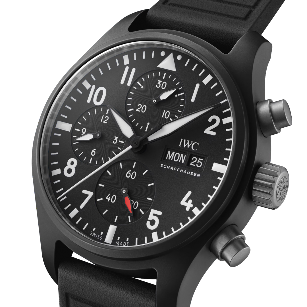 A Pilot's Watch Chronograph 41 TOP GUN a modellcsalád fekete kerámia kronográfjainak hagyományát folytatja ergonomikus 41,9 milliméteres méretben.