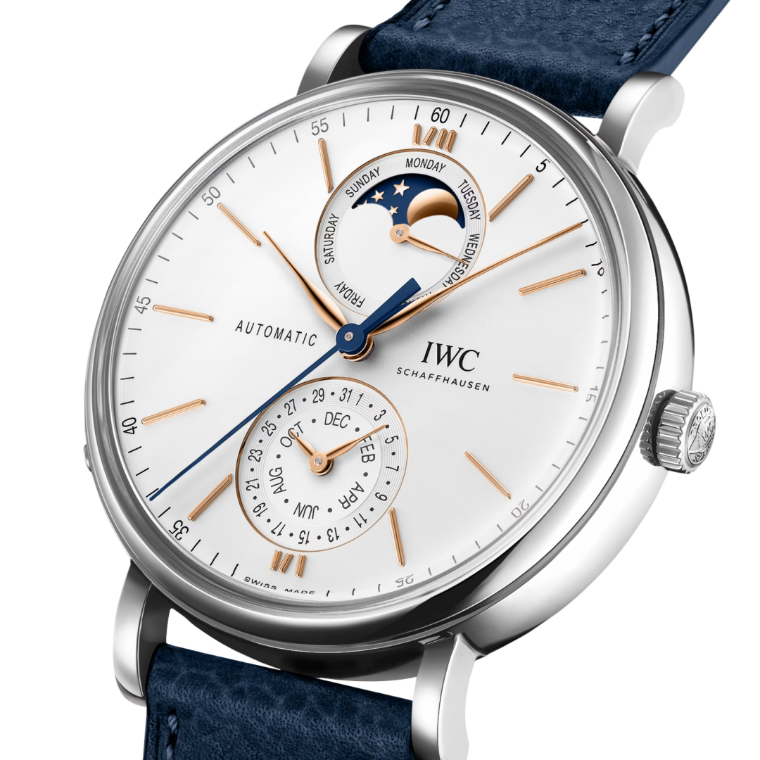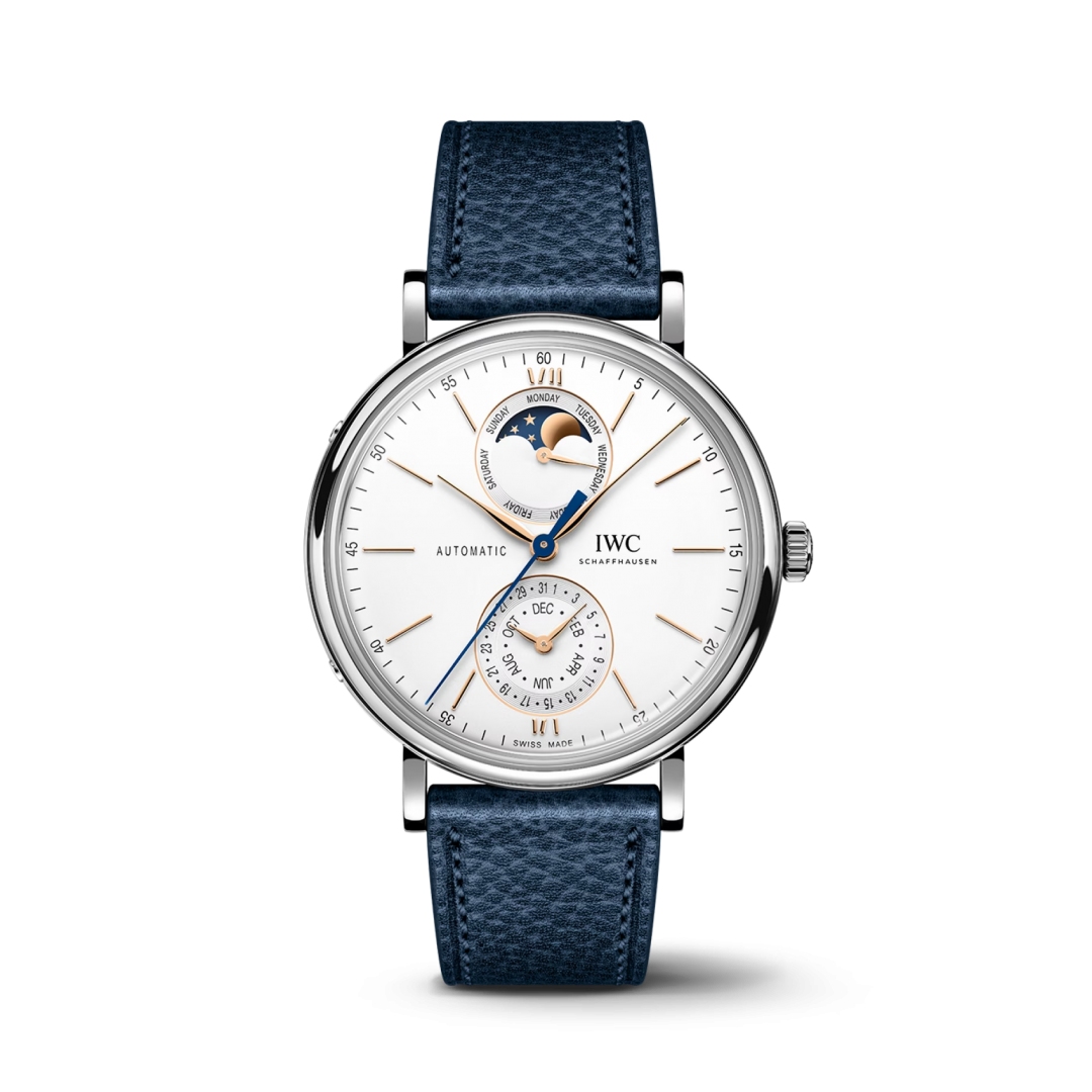 Férfi órák klasszikus órák luxus karórák webshopja IWC Schaffhausen Portofino COMPLETE CALENDAR 41mm acél tok bőr szíj.
