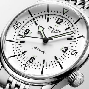 2025-ben a Longines új fejezetet nyit a Legend Diver történetében három friss modell bemutatásával. Az óra 39 milliméteres rozsdamentes acéltokjának mérete és arányai a klasszikus, 1959-es elődöt idézik, miközben igazodik a modern kényelmi és a technikai igényekhez. Az óra számlapját és a kétirányba forgatható lünettát egy domború, kupola alakú zafírkristály óraüveg védi, amely a vintage modellek egyik jellegzetes vonása. Az óraüveg mindkét oldalán többrétegű tükröződésmentes bevonatot kapott, így bármilyen fényviszony mellett kiváló leolvashatóságot garantál.