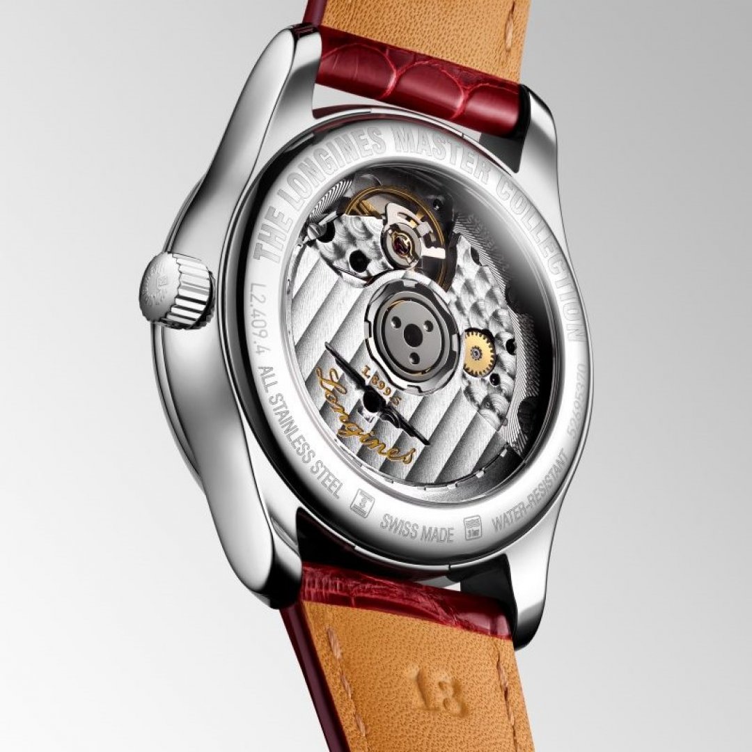 Longines Master Collection 34mm acél tok bőr szíj gyöngyház számlap.