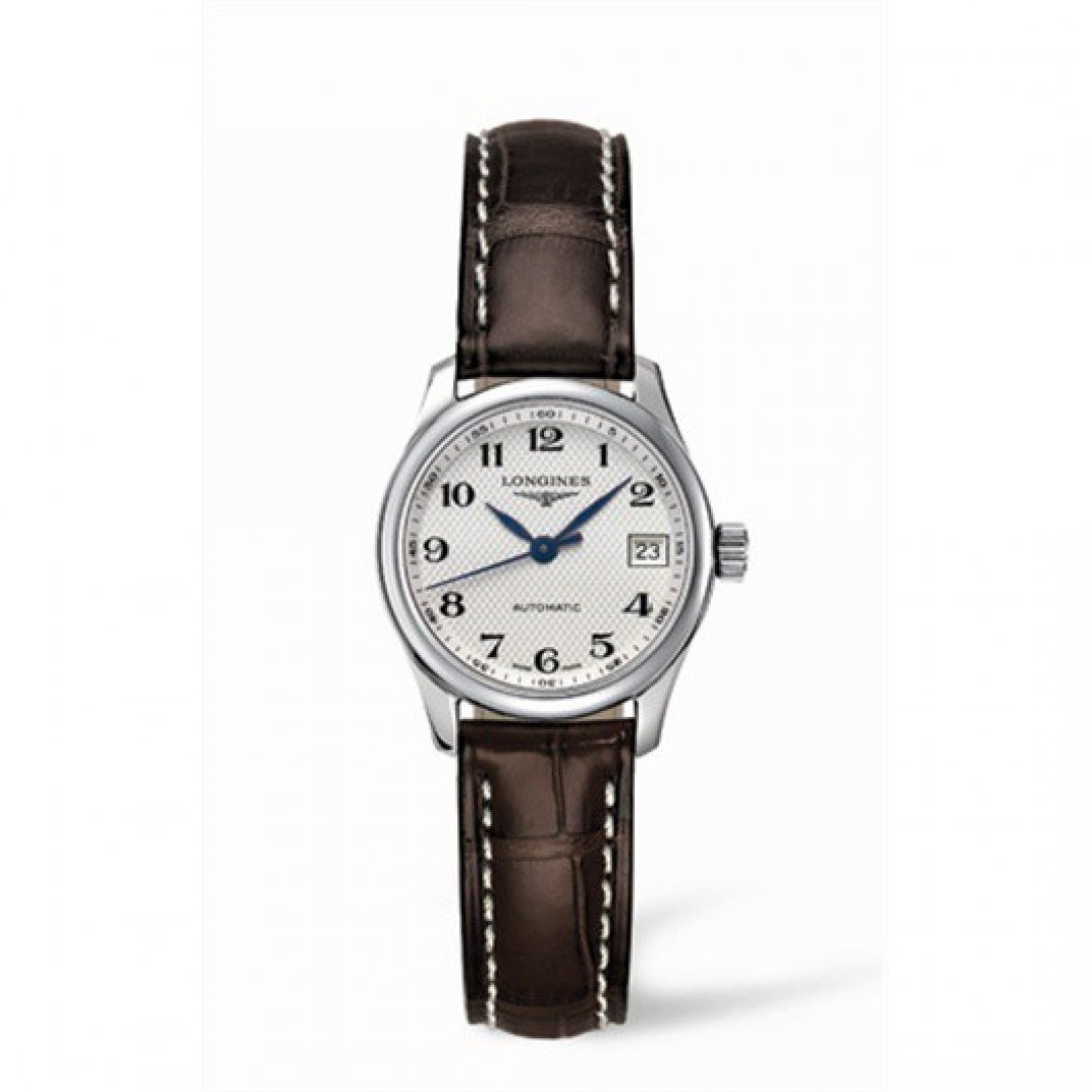 Luxus órák Longines Master Collection Arabic Numerals, Automatic, 25.5 mm. Az óra ezen funkciókkal rendelkezik: adatmutató. Számlap színe: bézs, szerkezet típusa: mechanikus óra automata felhúzással, szíj anyaga: bőr, vízállóság: 30 m.