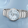A klasszikus formák és a mindennapi, mégis figyelemfelkeltő elegancia kedvelőinek a Mido Commander Lady Blue modellt javasoljuk. Az 1959-ben útjára indított Commander széria időtlen stílusjegyei ezen a 35 milliméteres, rendkívül nőies modellen is visszaköszönnek.