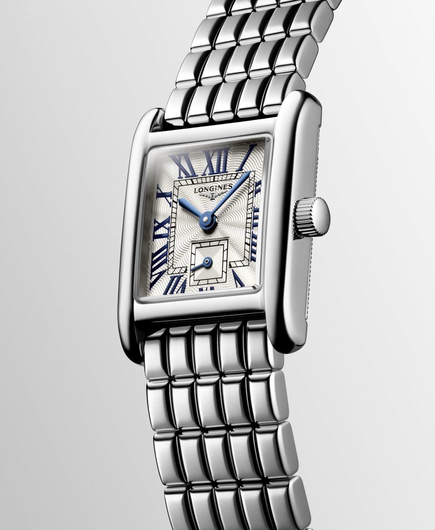Női karórák luxus órák luxus karórák webshopja Longines DolceVita MINI 21.50 X 29.00 mm Acél tok acél csat. Az óra ezen funkciókkal rendelkezik: E.O.L.. Számlap színe: fehér, szerkezet típusa: Kvarc óra, vízállóság: 30 m, szíj anyaga: acél.