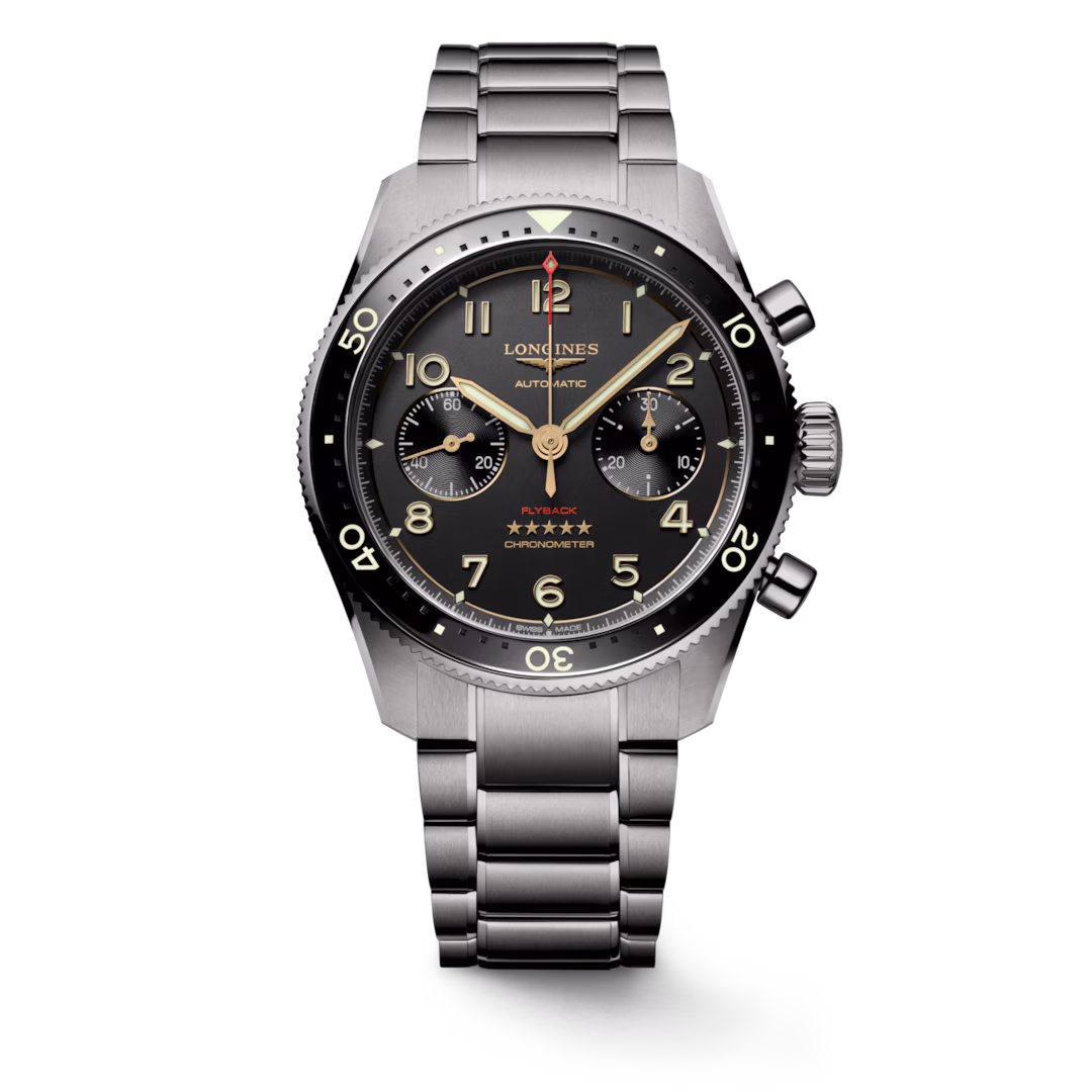 Prémium pilótaóra flyback funkcióval, titán tokban és kronometrikusan hitelesített óraművel. A Spirit Flyback modell a Longines 30-as évekbeli úttörő innovációira épít, és modern technológiát kínál könnyű, ellenálló és professzionális kivitelben.