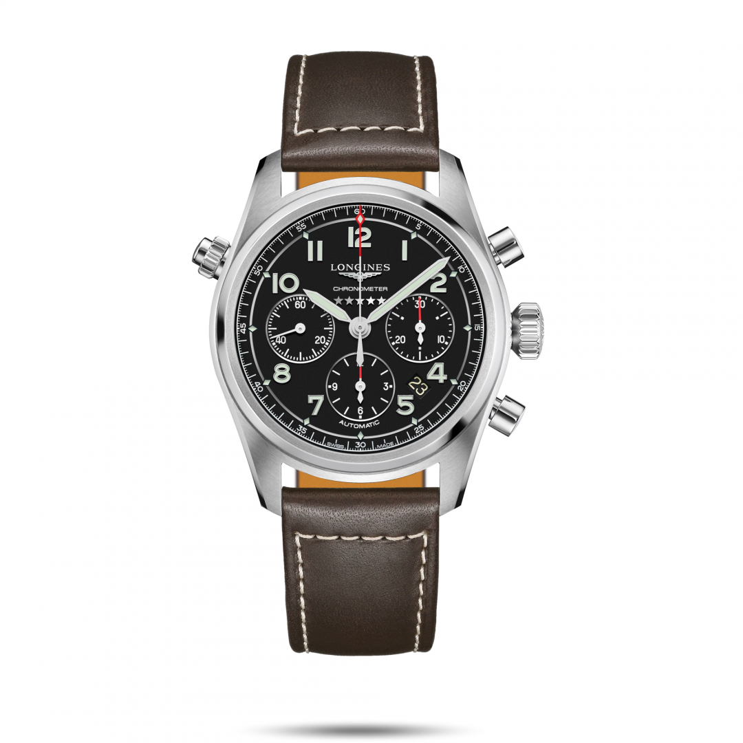 Férfi órák luxus órák luxus karórák webshopja Longines Spirit 42mm acél tok bőr szíj. Az óra ezen funkciókkal rendelkezik: naptár, stopper, lumineszcencia. Számlap színe: fekete, szerkezet típusa: mechanikus óra automata felhúzással, szíj anyaga: bőr, vízállóság: 100 m.