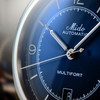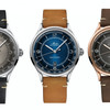 Három szín-variánsban elérhető: kék, szürke és fekete napsugaras felületű számlappal és fekete, cser és kávébarna vintage bőr szíjakkal.
