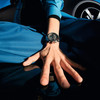 A rozsdamentes acél tok 44 milliméter átmérőjű, a fekete kerámia lünettán Porsche felirat. Az óra színeiben és fontkészletében is a Porsche modelleket idézi meg, a számlapon pedig nagyon hatásos aszfalt mintázat csillan meg.