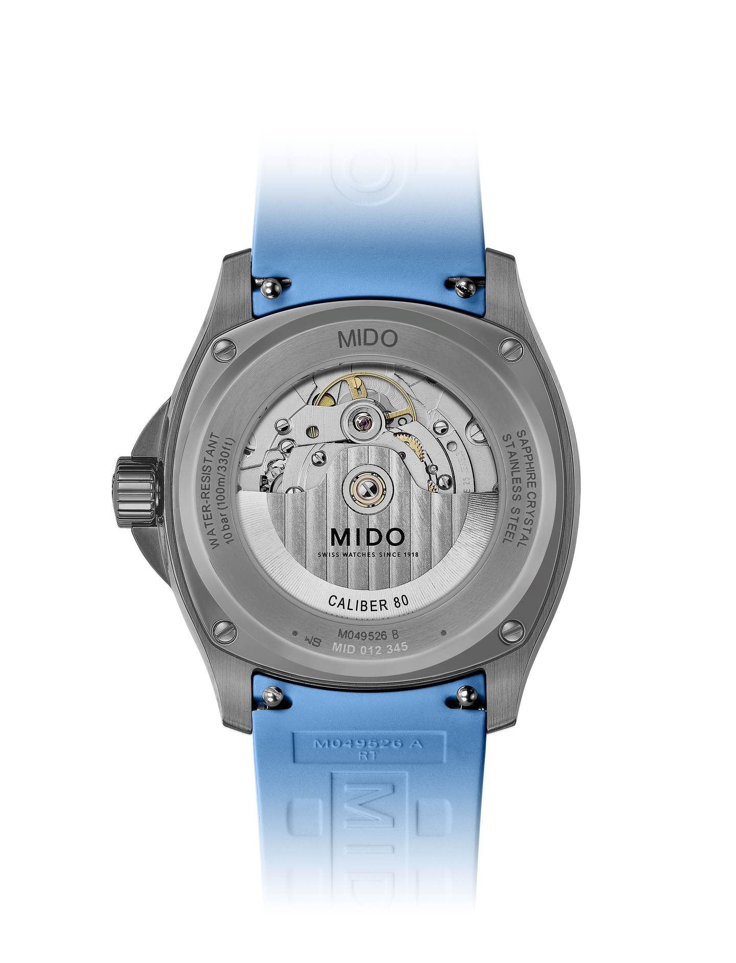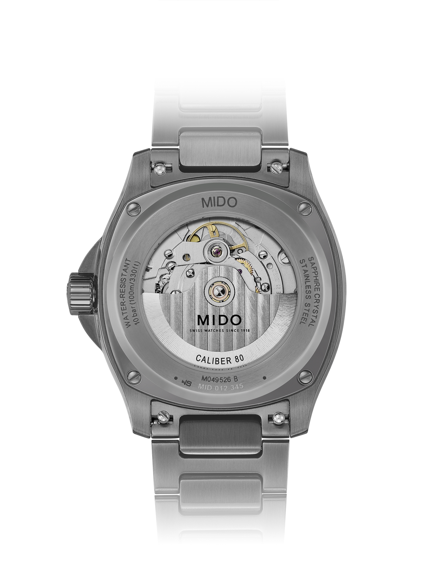 A bolondos számlapot zafírkristály óraüveg fedi, melyet mindkét oldalán tükröződésmentes bevonattal kezelt a Mido. Az óra átlátszó, csavarokkal rögzített hátlapot kapott, így a viselője betekintést nyer az óra Caliber 80 névre hallgató szerkezetének mesteri részleteibe. A díszített, 80 órás járástartalékkal büszkélkedő automata szerkezet lengősúlyán Côtes de Genève, avagy genfi csíkozás és a Mido logója látható. A szerkezet Nivachron hajszálrugója kiemelkedő ellenállást biztosít a mágnesességgel és az ütésekkel szemben, ami hozzájárul az óra hosszútávú megbízhatóságához. Az acéltok 10 bar, azaz 100 méternek megfelelő nyomásig áll ellen a víznek, ami a hétköznapi használat során bőven elegendő vízhatlanságot jelent.