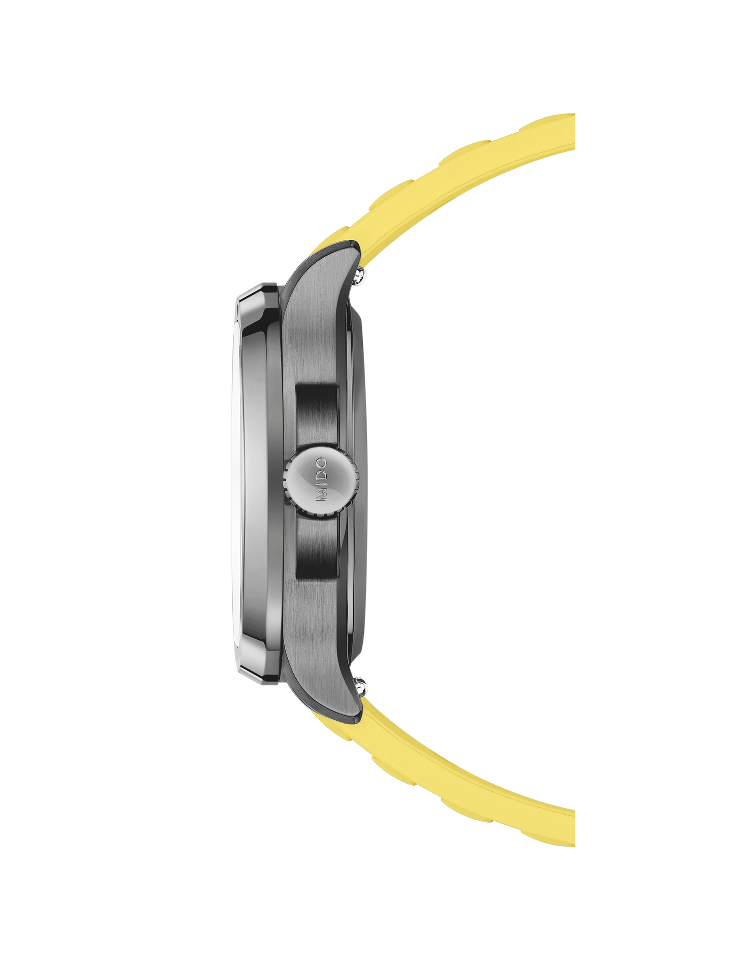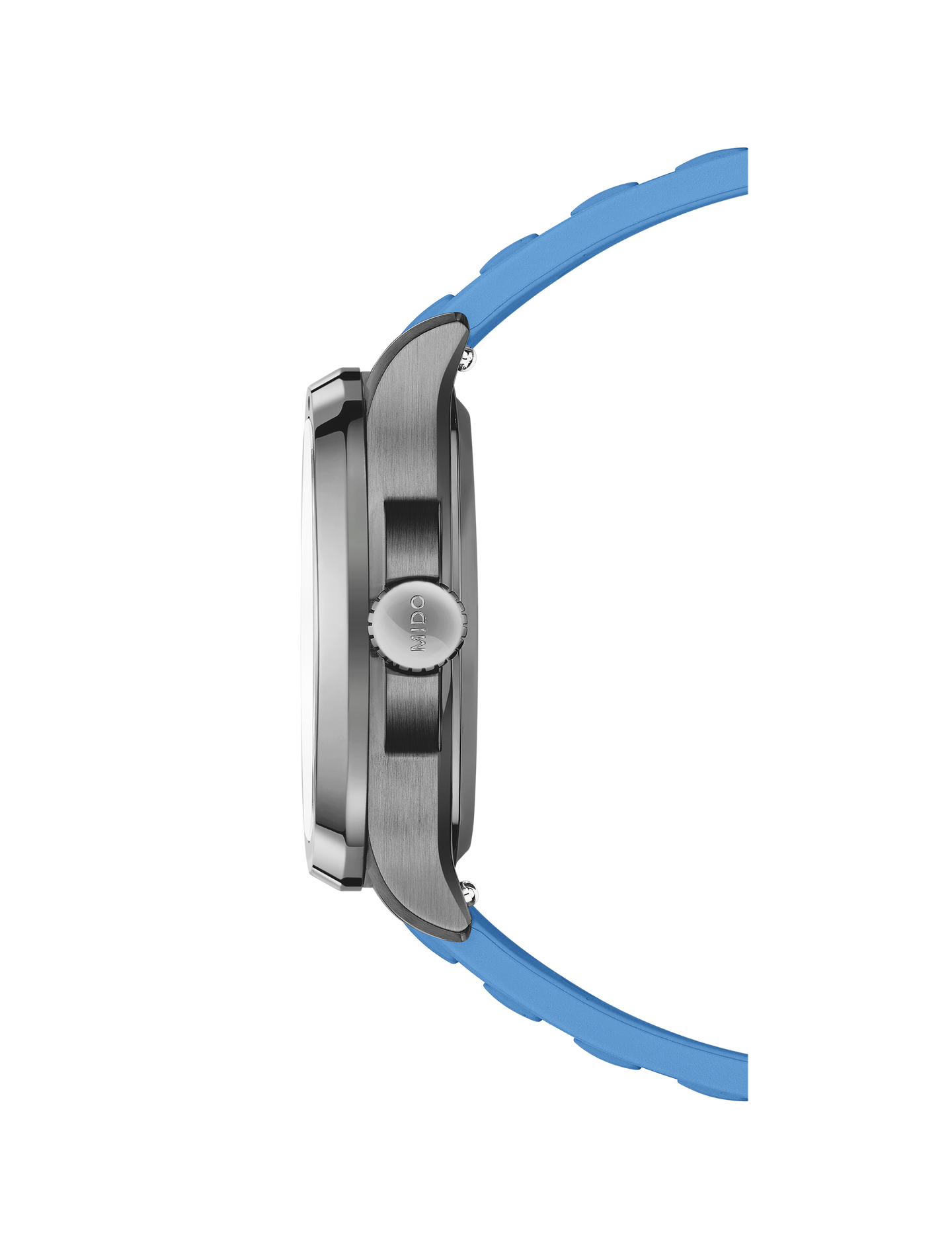 Az indexek és az óra-, illetve percmutatók fehér Super-LumiNova bevonatot kaptak, így a modell sötétben is jól leolvasható, ami a mindennapi használhatóság szempontjából nem elhanyagolható. A Mido az óra mutatóit, a nagy dátumablakhoz hasonlóan, úgy alkotta meg, hogy kiemeljék a játékos színekben pompázó számlapot.