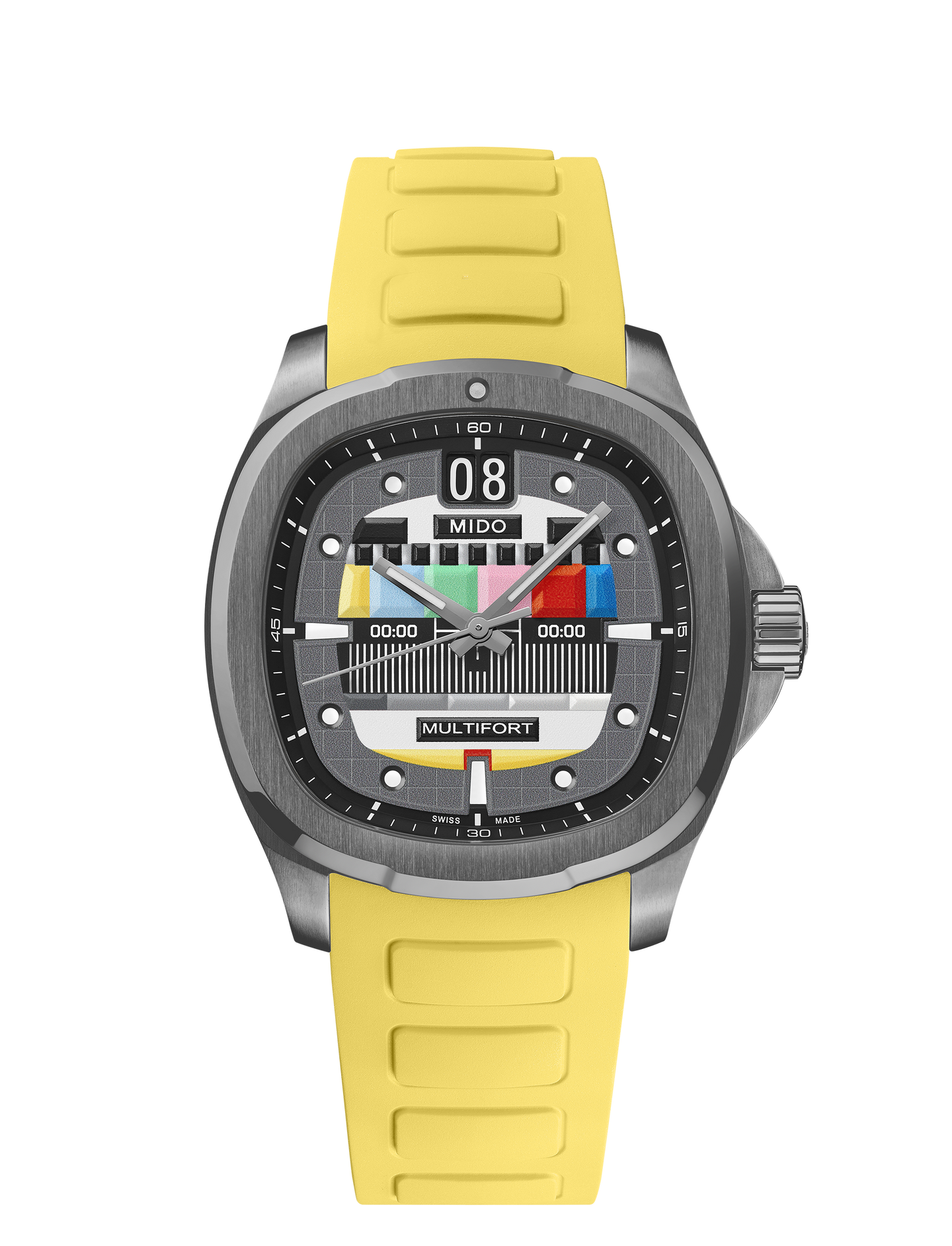 A Multifort TV Big Date S01E02 esetében a Mido több figyelmet szentel a prémium csomagolásra és a minőségi vásárlói élményre. Azoknak, akik extra játékosságra vágynak, két extra gumiszíjat is mellékel, egy élénk kéket és egy élénk sárgát. A gyors cserélhetőségre összpontosító rendszer eszköz nélküli, néhány mozdulattal elvégezhető változtatásokat tesz lehetővé. A modell ezáltal a viselő igényeihez igazodva több karakterrel is rendelkezhet.