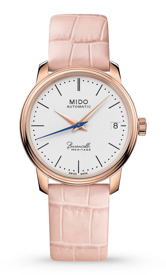 A párban vásárolhatónak tervezett Baroncelli Heritage svájci órákat könnyűségük, karcsúságuk és rendkívül tiszta vonalvezetésük különbözteti meg, amelyet a kétoldalas mutatók és a dupla gadroon biztosítanak. Ezek a klasszikus és időtálló, automata szerkezetű órák a MIDO szakértelmének tökéletes kifejeződései.